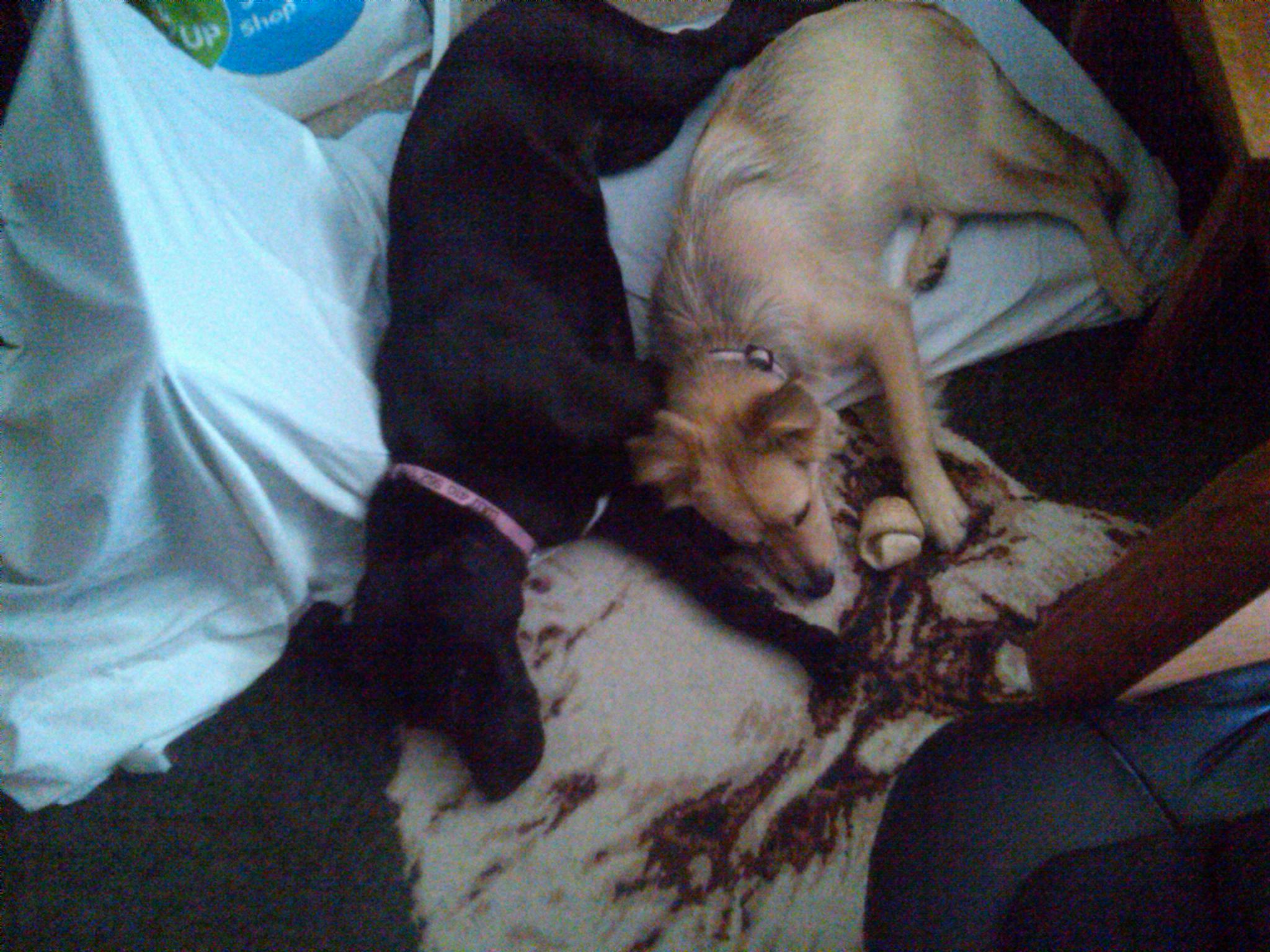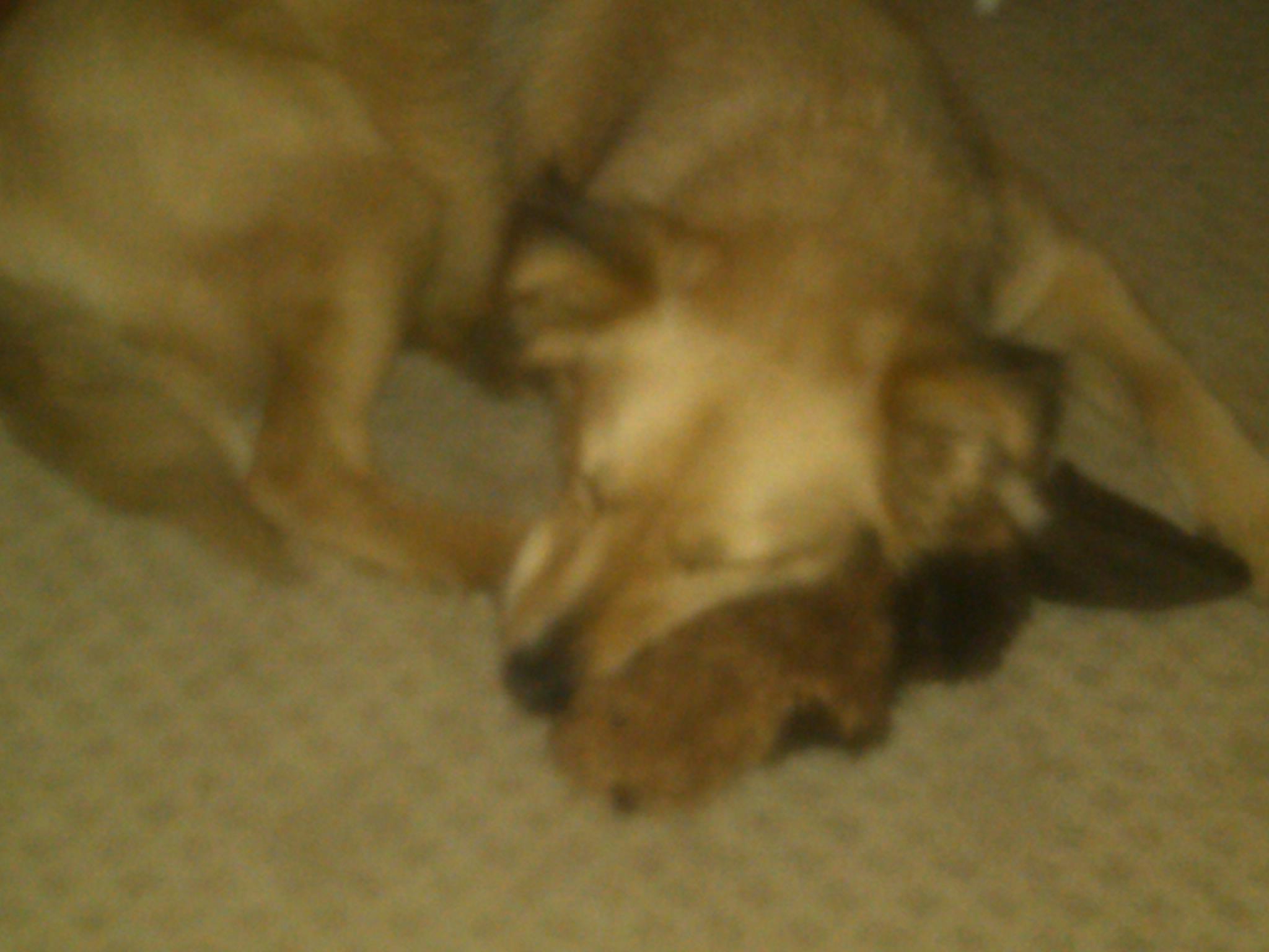 Quiet day here at the zoo. Sofie seems back to her normal crazy puppy self. She loves to run, jump, bark at everything that moves and nothing is going to stop her! I am so happy, but I am going to keep her on the DuraMaxx for another couple of days and then see how she does without it. She wants to play but all the other animals want to take their midday naps. She is whining and has brought me her lovey, ‘Beaver.’ I bought Beaver for Louise the day that I brought Sofie home but somehow it became Sofie’s inseparable toy. Whenever she is tired or whiny, she goes and gets Beaver. Sometimes she brings it to people she just met to show that she likes them (my interpretation of her actions at any rate). She gets Beaver and takes him downstairs to her kennel when she wants to go to sleep at night too. Beaver is one of those stuffingless soft toys. Well, Ry is back on a plane to school in Florida, K and V are out, and C is doing her AP English holiday homework (‘Heart of Darkness’ by Joseph Conrad – I do not envy her), so maybe I will finish cleaning my office before I have to start working in it again on Tuesday (if I ever get off this computer.) Thank goodness both dogs have settled down now and are on their bed on my office floor taking a nap. Just another dagdaz afternoon.