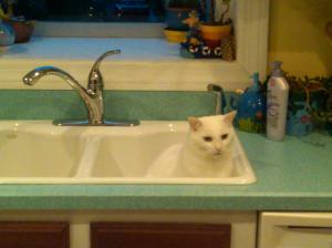 Miss Constance Kitty is always in something, under something, or playing with something. She sets the dogs up a lot and gets them in trouble by dropping things on the floor for them to eat or destroy. Her name really should be ‘Mischief.’