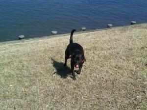 Lulu likes to go down to the river and visit the Osprey.  The Osprey aren’t to happy about it and swoop down as low as they can to yell at her.  She says “This is my river bank and I was here first.”  She doesn’t know that the Osprey return to our platform in the water every year and have their babies. I don’t know if they are the same pair or new families. They have started to screech over the house a lot to let Louise and Sofie know to stay away.  The other day one of them had a huge stick in his back talons and was taking it to the nest.  I love spring,  Just another dogdaz morning at the zoo ❤