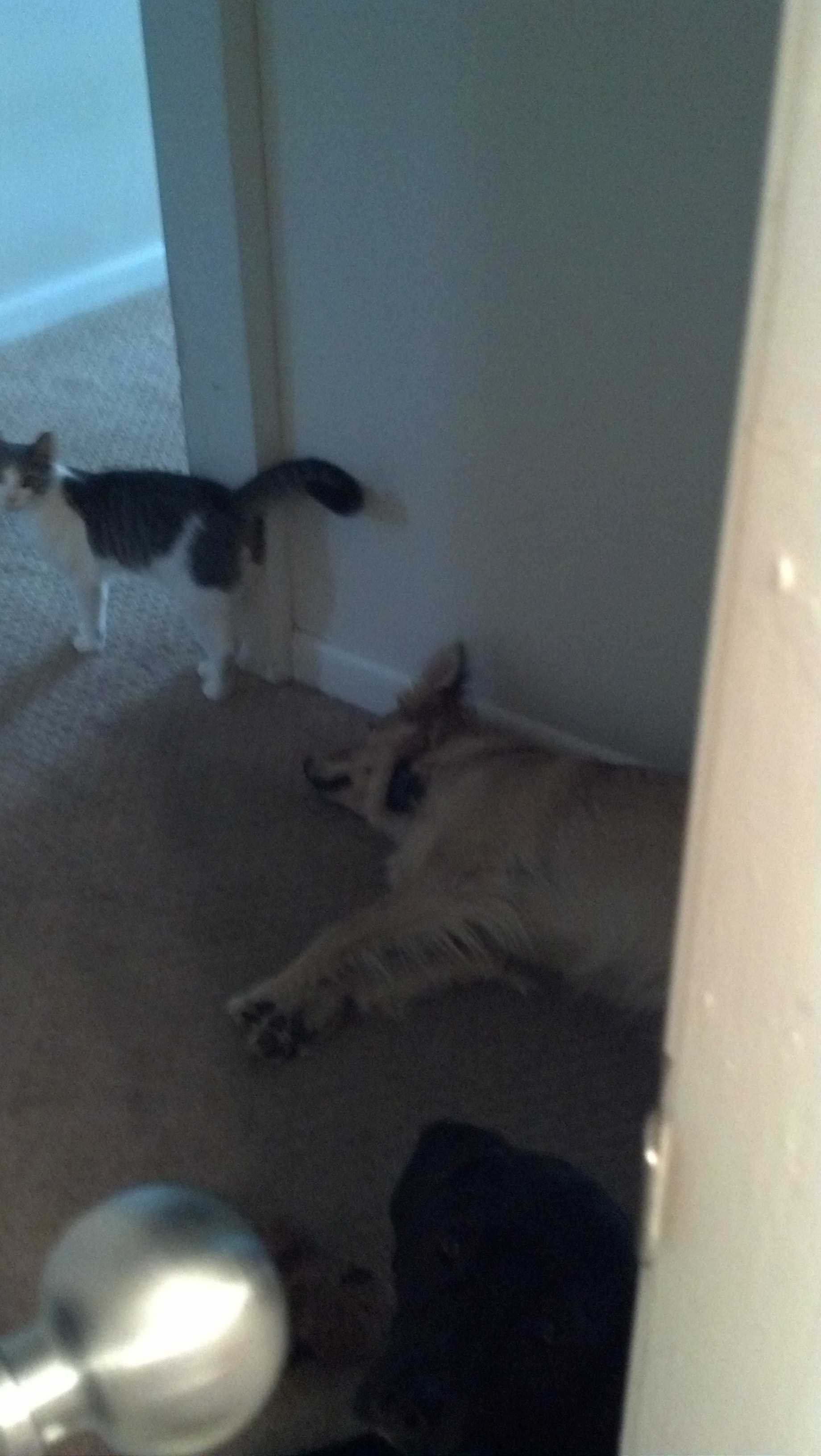 Do you ever wonder why children and pets hate when you are in the bathroom with out them? I was going to take a shower. As you can see 3 of the pitiful zoo creatures were camped outside my bathroom door.
