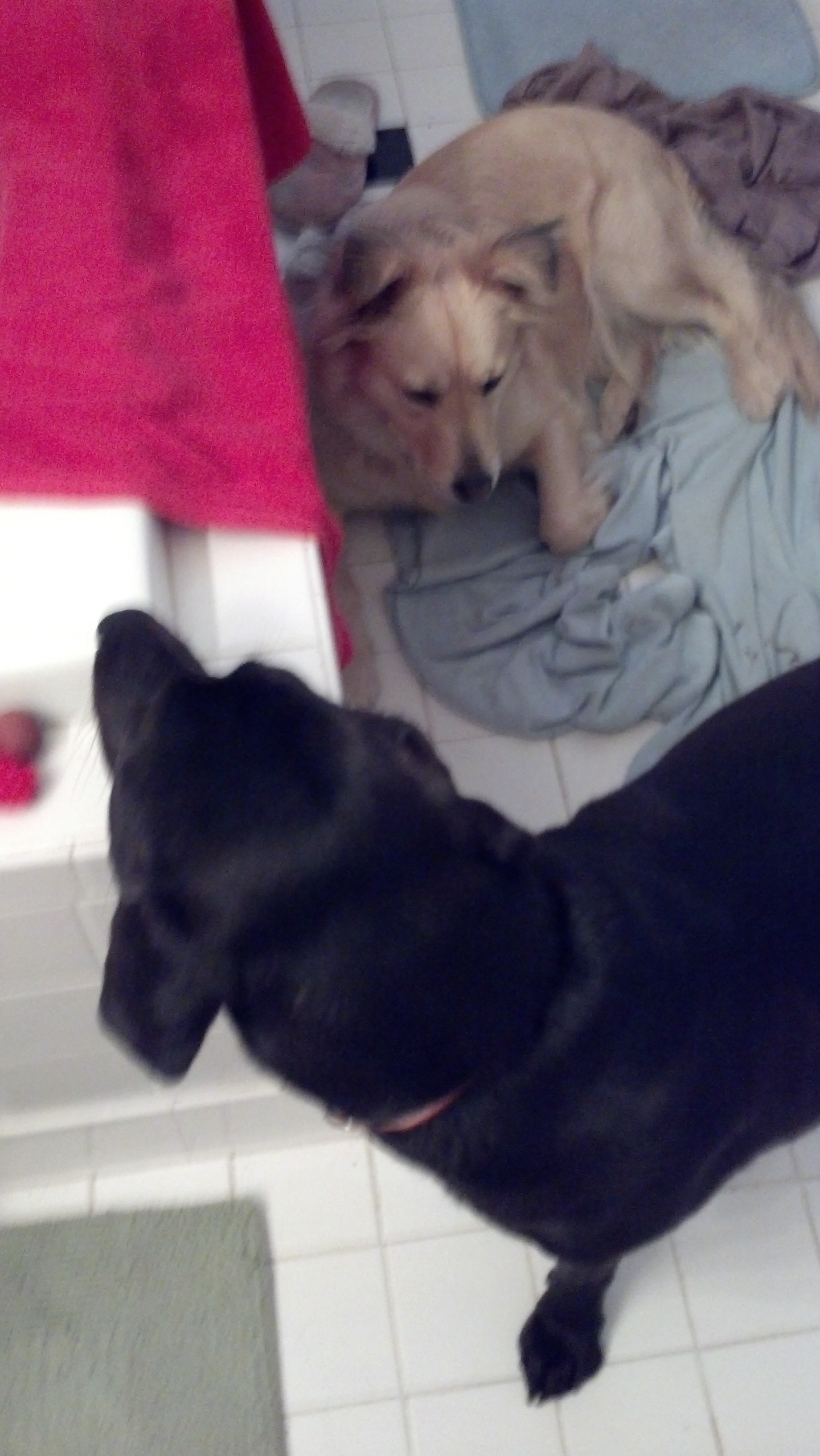 We always go into the bathroom with our humans just like some of the Zoo members. We go everywhere with our humans so why wouldn’t we go there? Did we miss something?