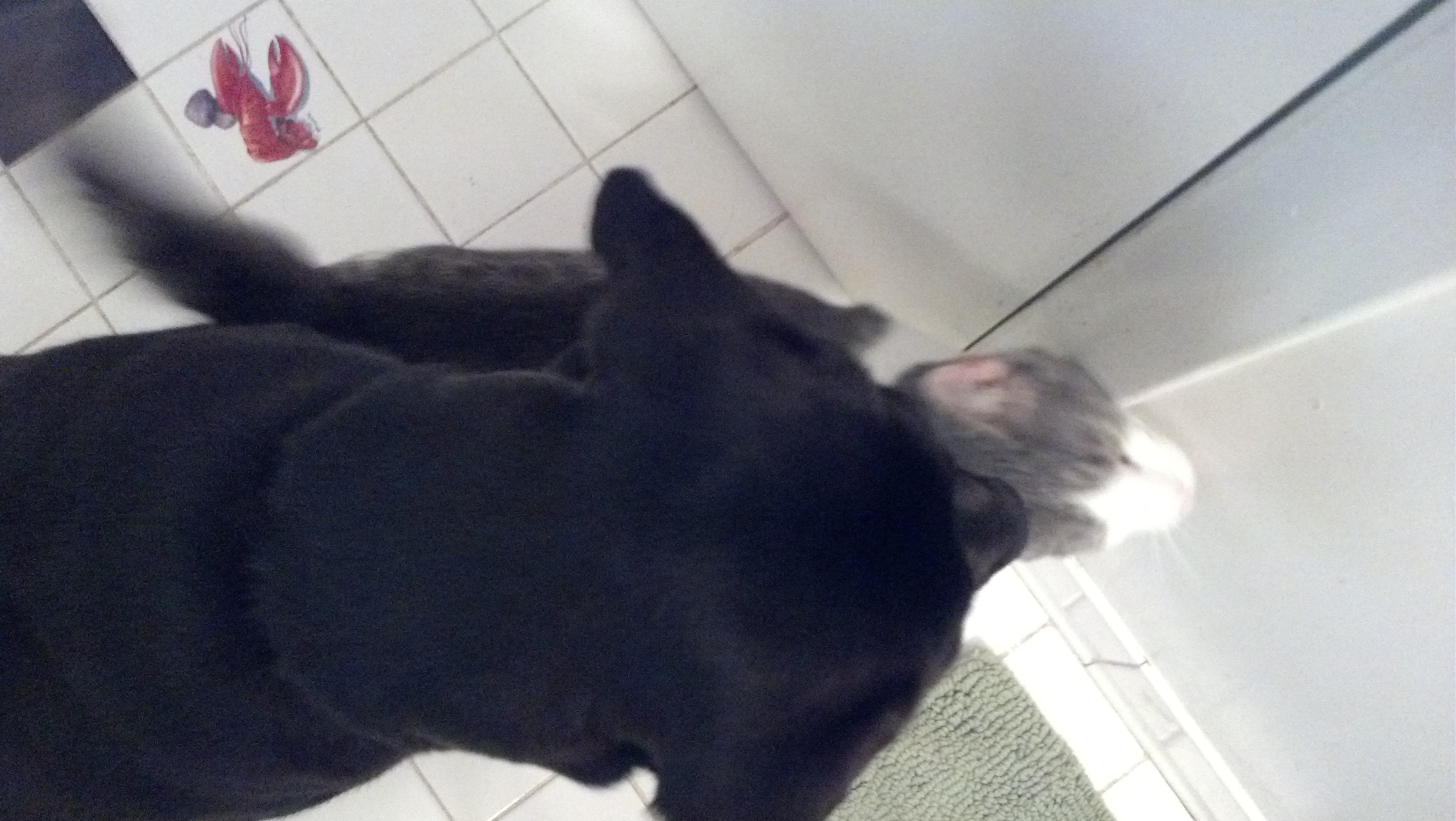 My cat is 13 and he gets frantic if I close the door while I’m in the loo. Then he wants to sit on my lap. Captive audience, I guess? And, if you don’t stop her, the dog will “help” you dry off by licking the water off your legs. We like to say “You’re not really clean until you’re Kayla clean!”
