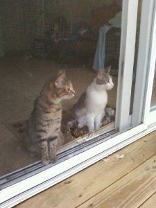 Cats do not go outside in my house. It is to dangerous a world in the street and I do not have the energy to deal with them getting killed or just plan hurt. But Nine…. he just really does not like being away from Sofie.