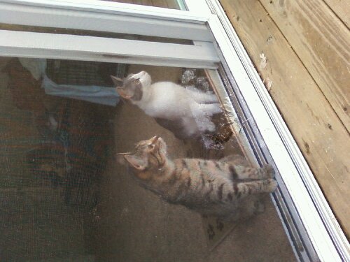 Stella, the baby kitty, did not even try to follow. She knows the rules. Nine and Sofie, on the other hand, are my two trouble makers.