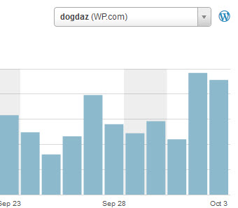 I am not sure what this means, but it seems that while I was away on business last week, Noël’s blogging increased my blog traffic significantly. I have been worrying about how low my readership was getting. My daily traffic rates have been steadily declining all year, but my recent absence appears to have caused a positive spike. What does this mean? Should DOGDaz become CATDaz? Should I let Noël or the other cats run the zoo more often? Should I go on more business trips?
