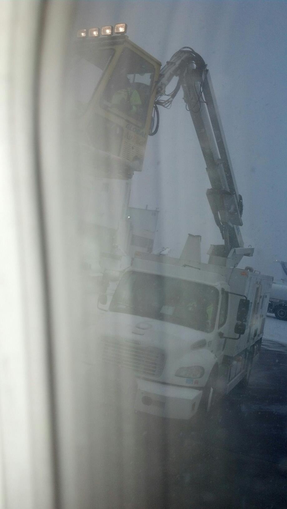 Post Script: Here are some pictures of Mom trying to get home right before the blizzard on Friday. That is the plane being deiced. The snow was falling about 2″ an hour and had just started. We are glad she made it out of New York.