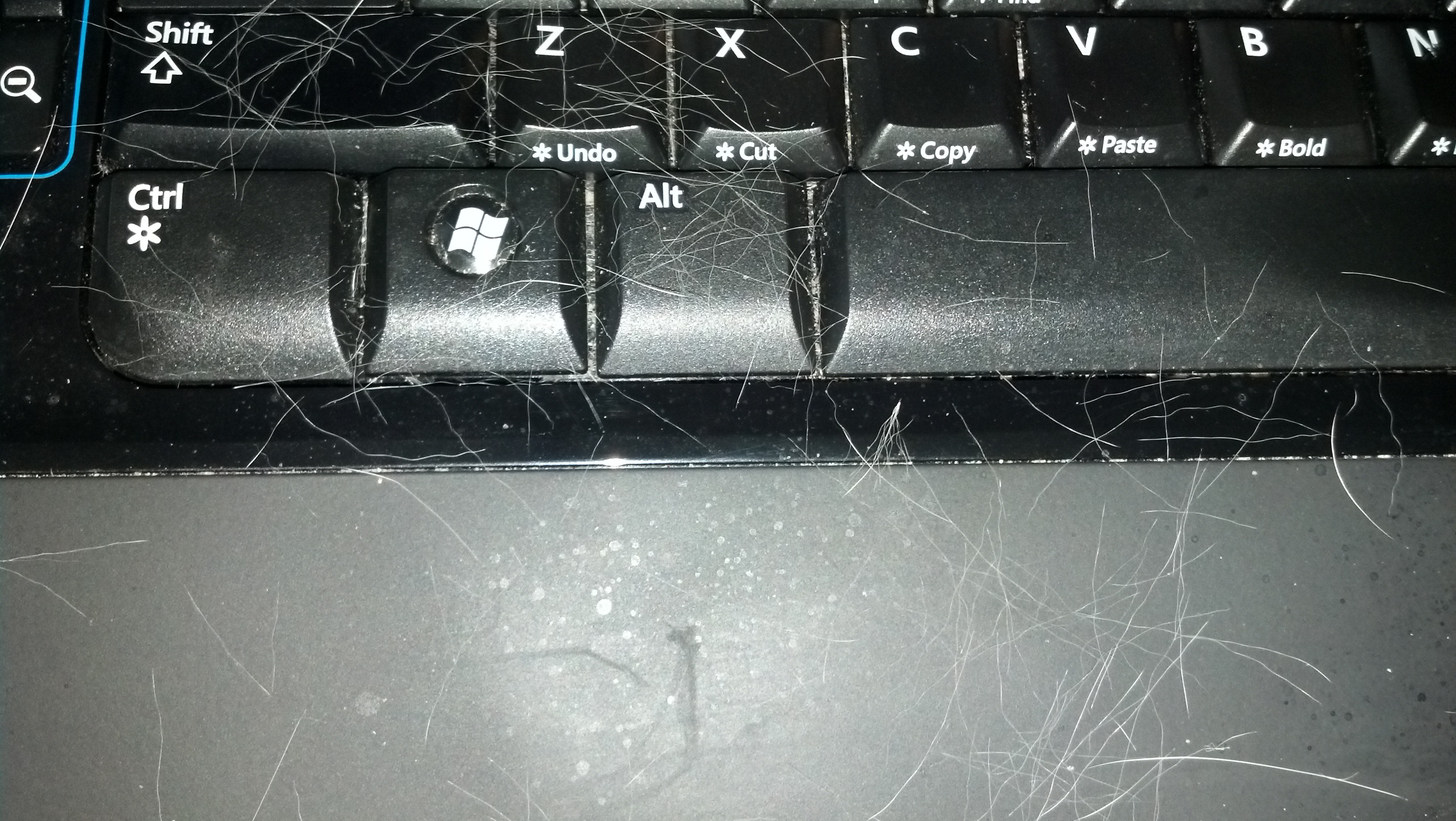 There are 3 cats and 2 sheddy dogs here. Mommy gives up with all the fur most of the time. I do blow out the key board with compressed air though.