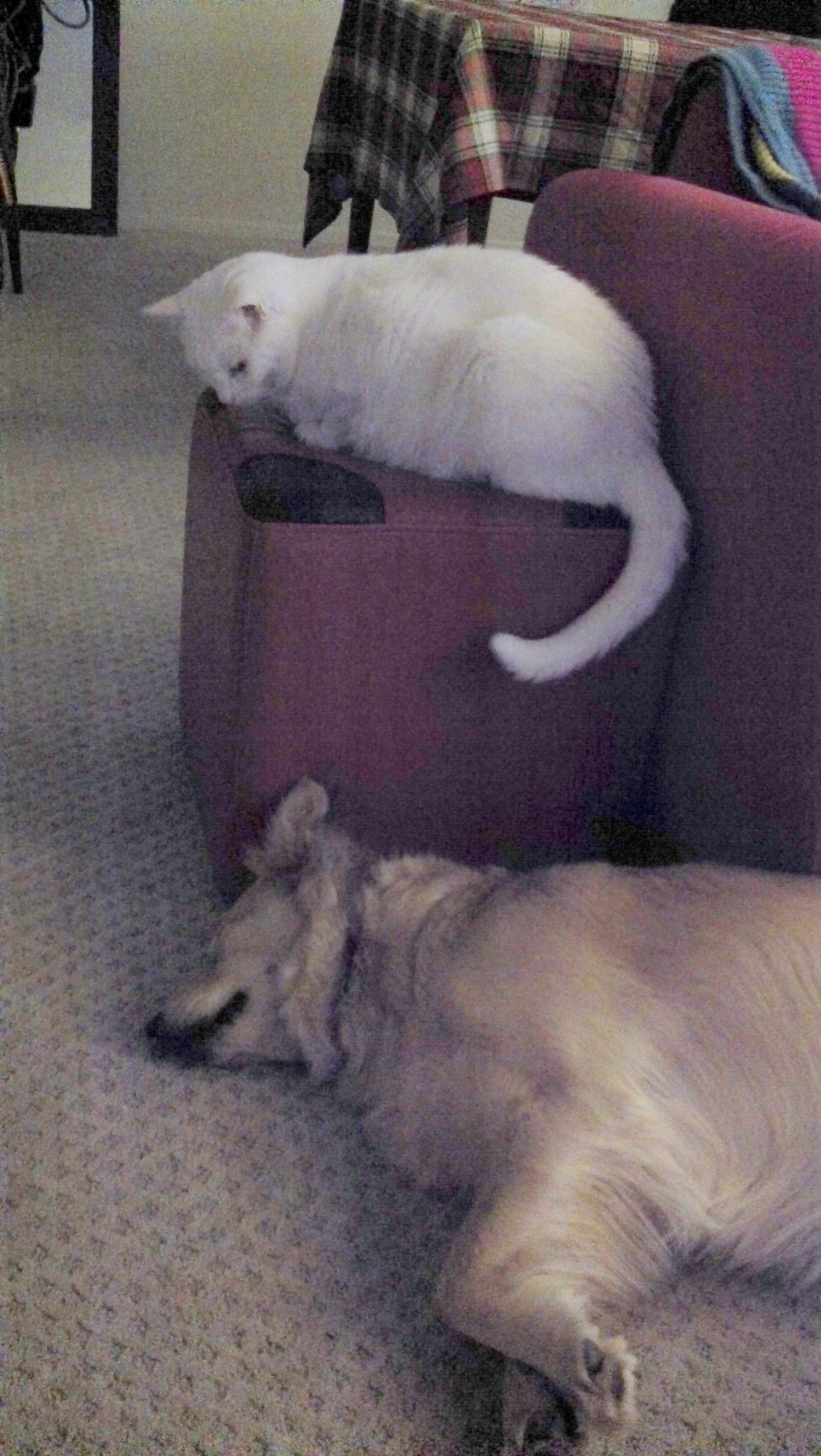 Noel knows how to keep her distance. Dogs are safe, from a good higher perch.