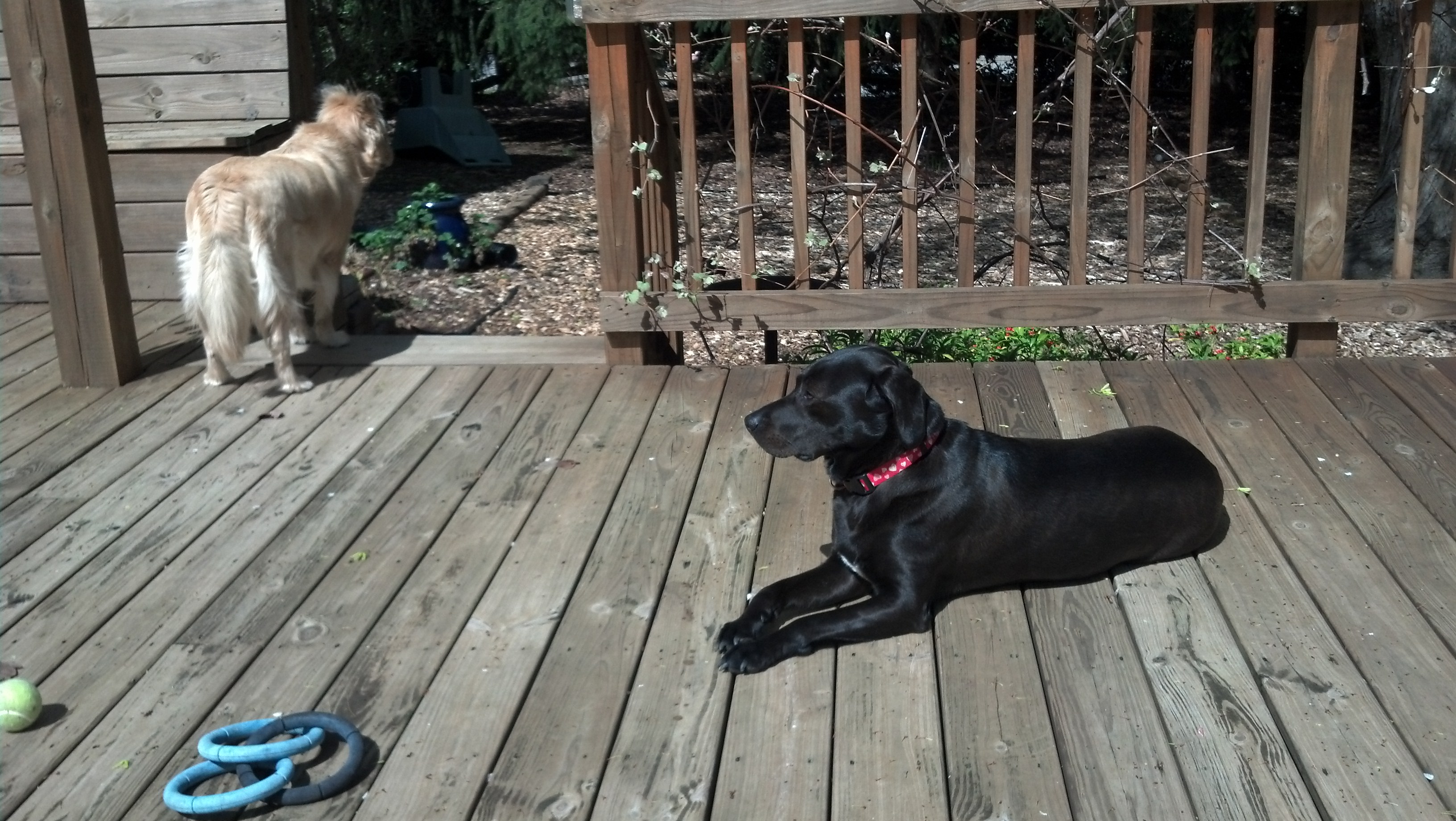 Yous is like my hairy slobbery sisters! They takes turns guarding their toys from evil intruders!