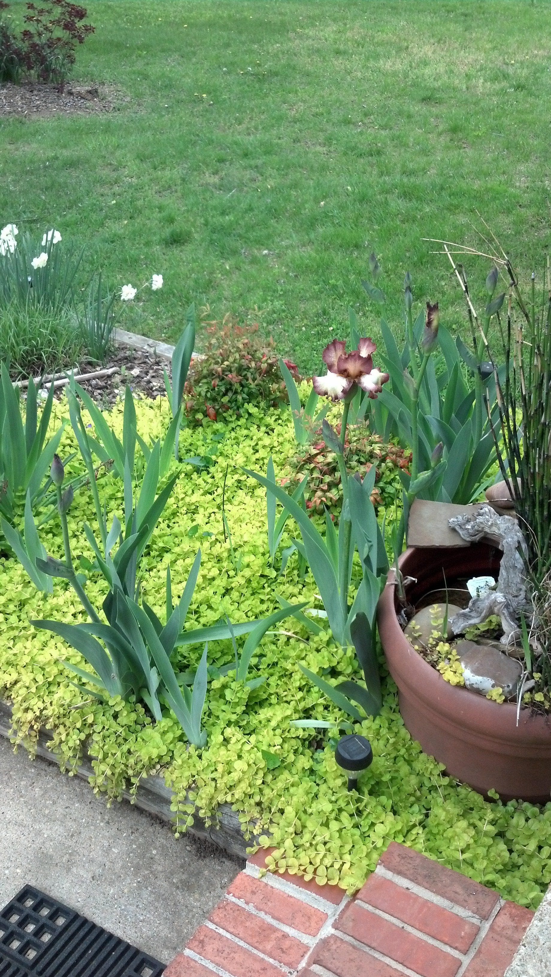 It always amazes me how the plants just seem to ‘pop’ all of a sudden. This April, here in the Mid-Atlantic, we had a record snow fall, record cold, and record heat. I am glad to report, though cooler than normal temperatures overall this month, ‘spring has sprung!’ As you can see reflected in my front door.