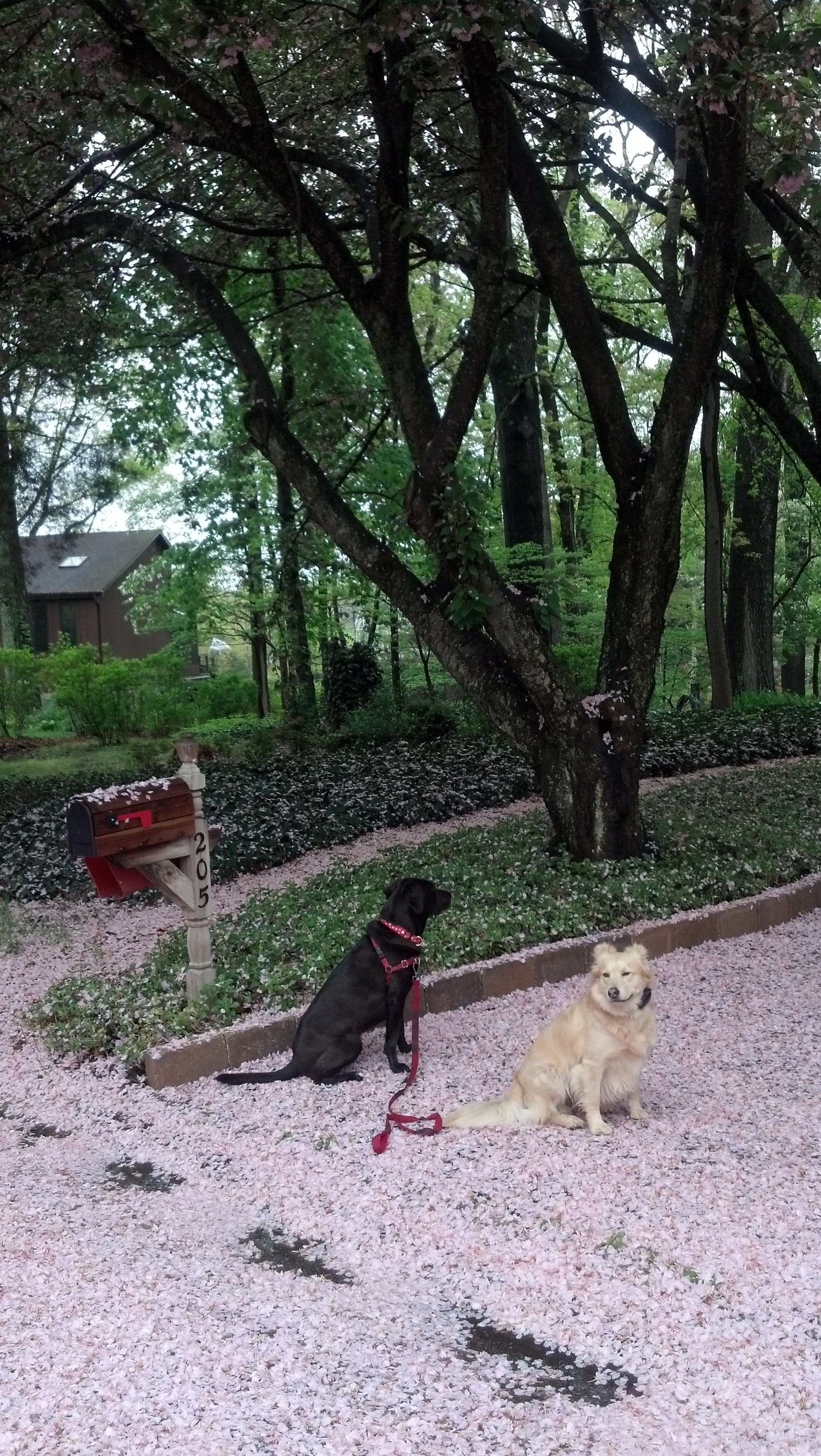 The whole drive is covered with Cherry Trees. Amy, the yellow lab’s, Mom is tired of having to shovel in the spring too.