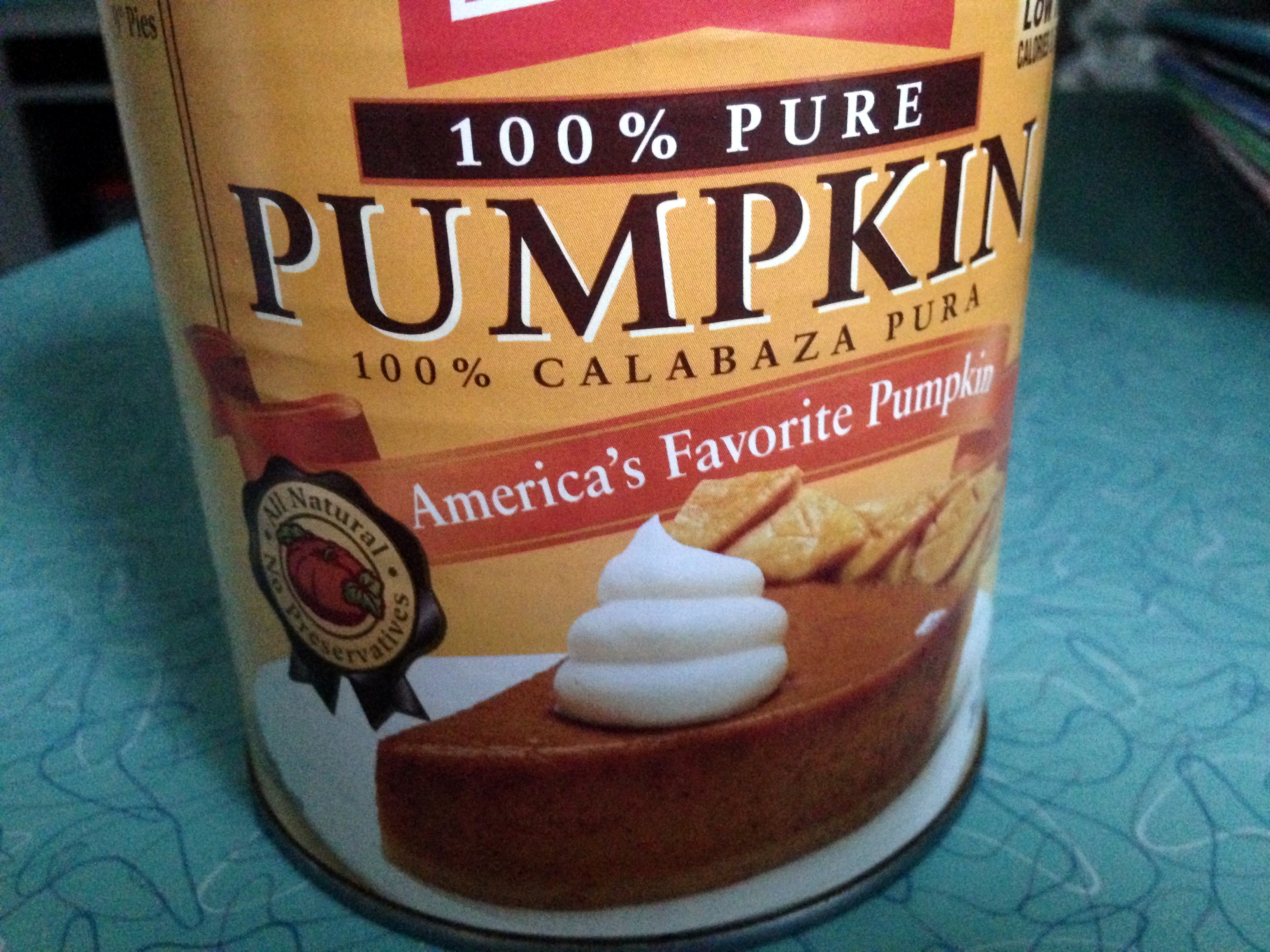 (Optional) 1/2 to 3/4 cup 100% pure PUMPKIN (NOT pumpkin pie mix, which is full of sugar and other stuff)