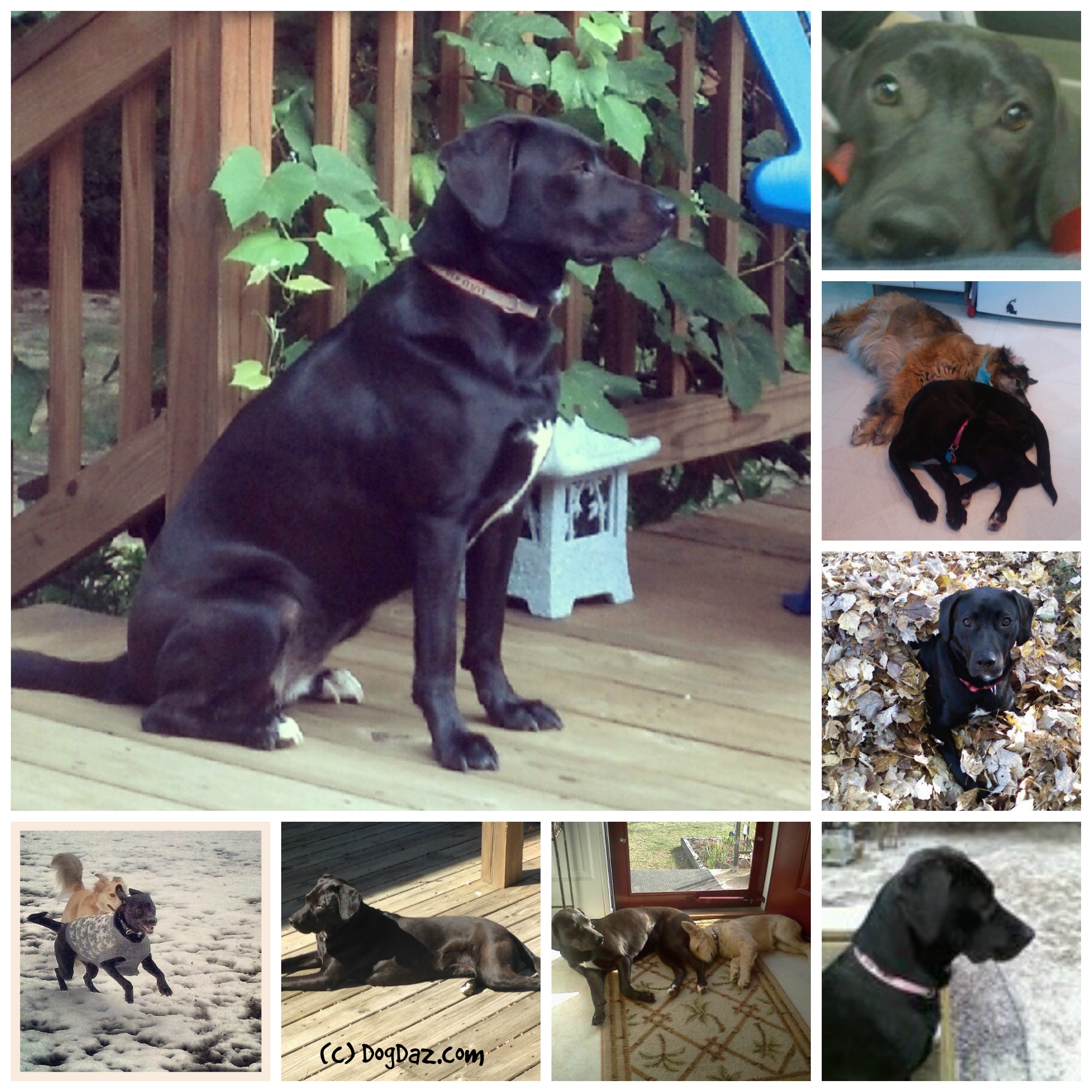 From top right, Louise the day she rescued us (April 2010), Lu with Squash E Bear (June 2010), first fall (Oct 2010), first snow (Jan 2011), with baby Sofie (April 2011), Summer 2012, Winter 2013.