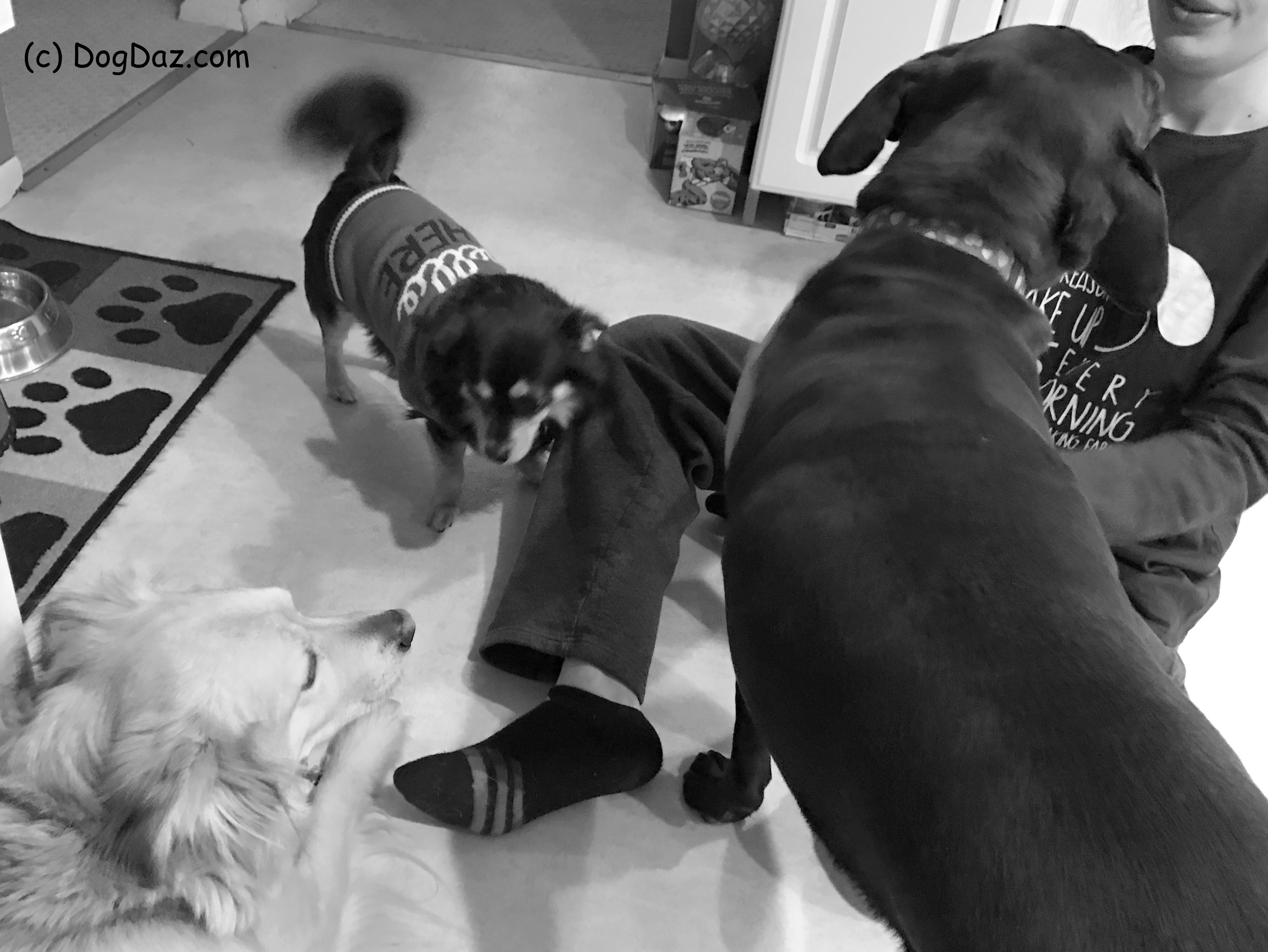 If you choose to sit on the kitchen floor, Peanut, you will not be able to escape the onslaught of kisses. But what else would you want to have on a Sunday morning? Have a great day.