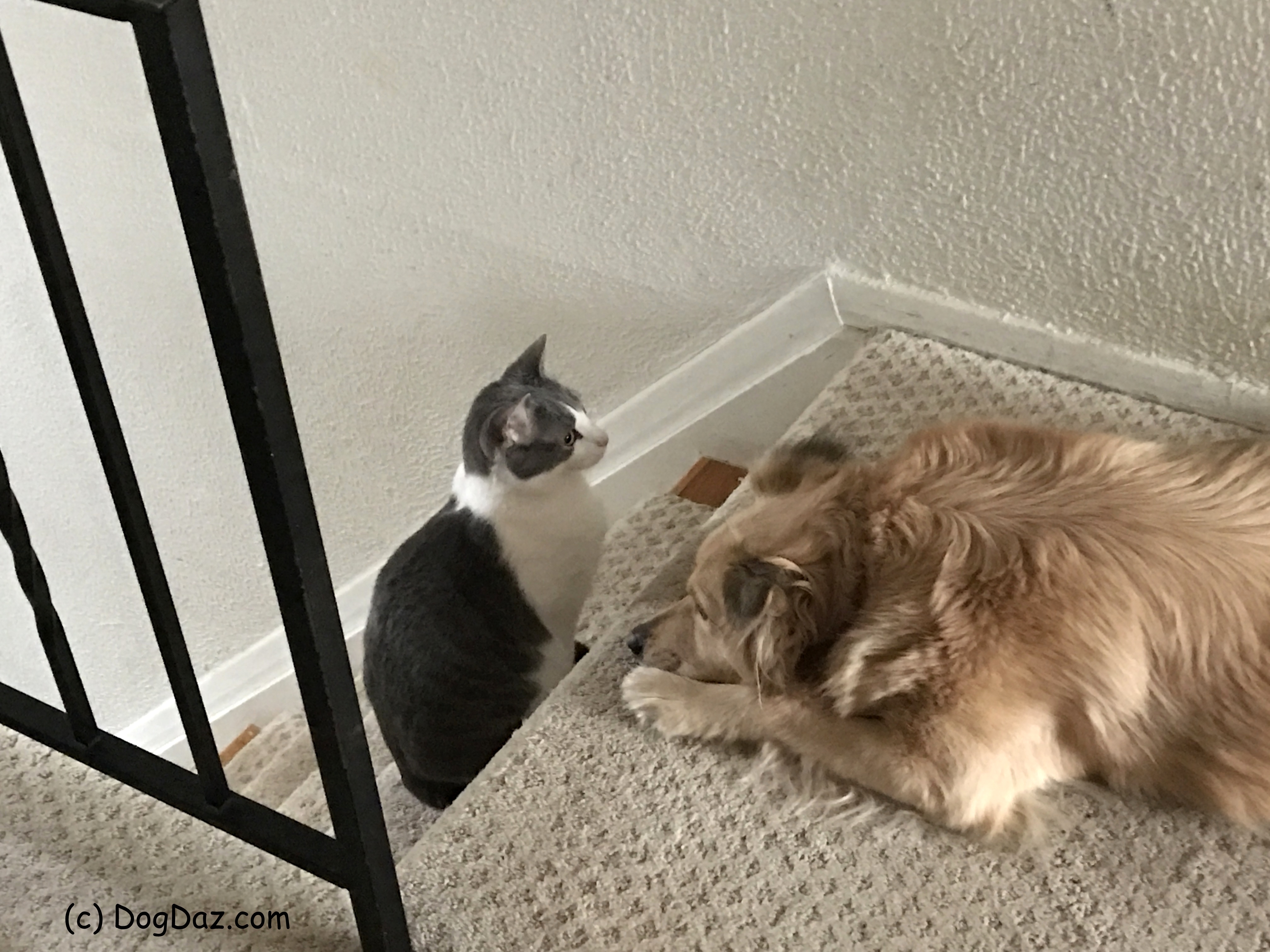 So cute! Kitties always claim the stairway. I’ve found that the password is “I’ll give you treats.” You may want to try that. 🙂