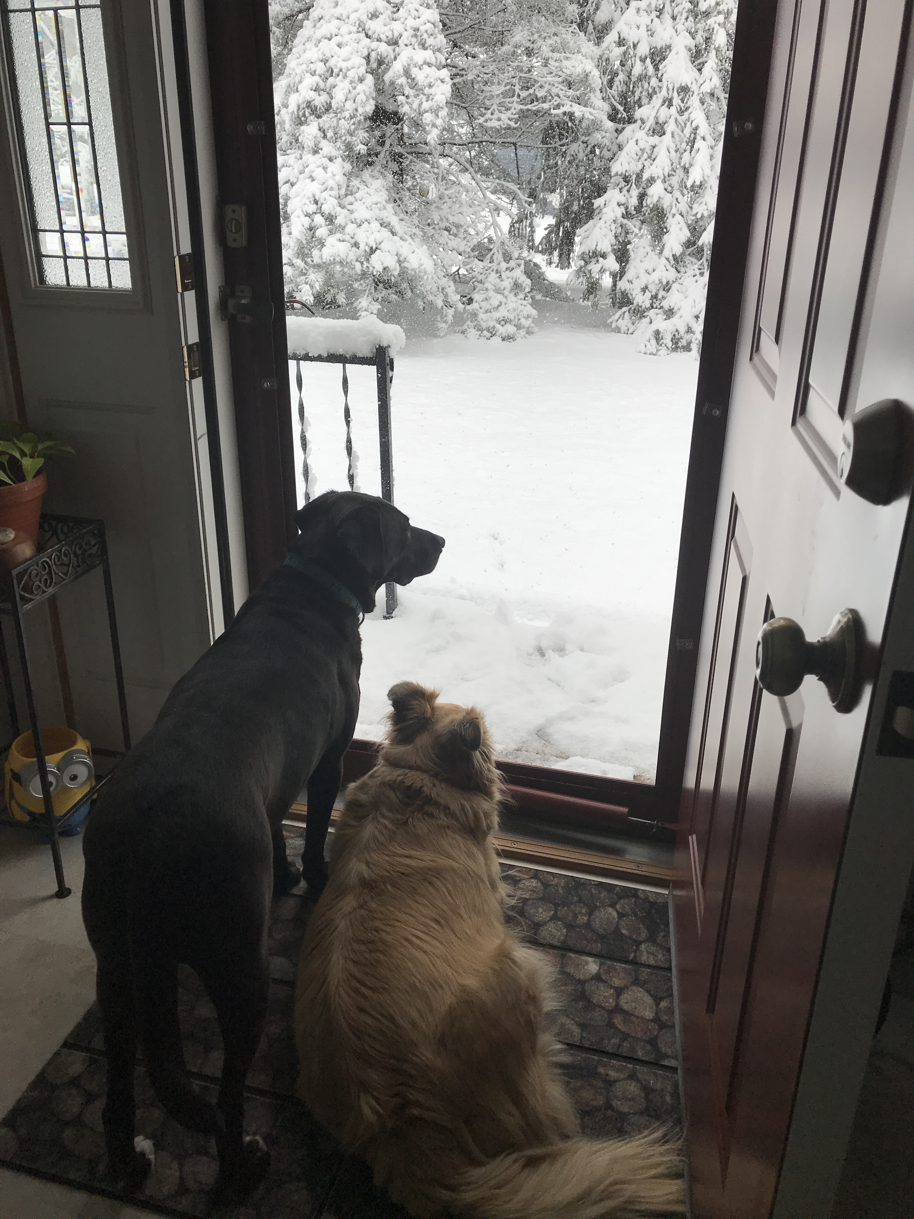 18″ expected here – it is coming down hard now. We plan on losing Charles under a snow drift if Mom isn’t watching – Sofie
