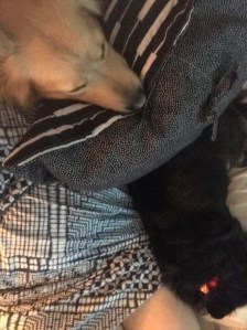 Oh, Louise was napping with us too. But she knew that Mom was covered with dog, so she took the guard position on the floor.