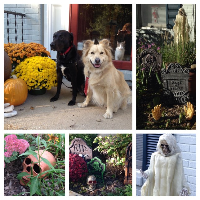 We have so much fun at Halloween. Maybe because it is just a fun time, no need to cook and bake and worry about family or presents or going to visit people. Here at the zoo, we love the fall and everything that comes with it. Though it is the dying off of the crops and the going to sleep of the plants and the earth, it is a magic time for us. We really enjoy being wrapped in layers and having a crackling fire to warm our bones. Though the cold has started to affect us all, because we are not puppies anymore, it still holds a freshness that makes us feel alive.