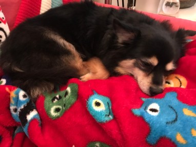 For Lulu, it is definitely on a dog bed, preferably in the same room as Mommy.