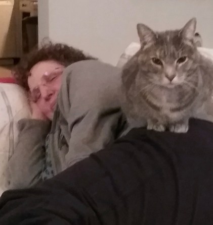Mini has these skinny legs and though she is only about 10 or 11 pounds, she jabs into my side and wakes too. Life with Cats!