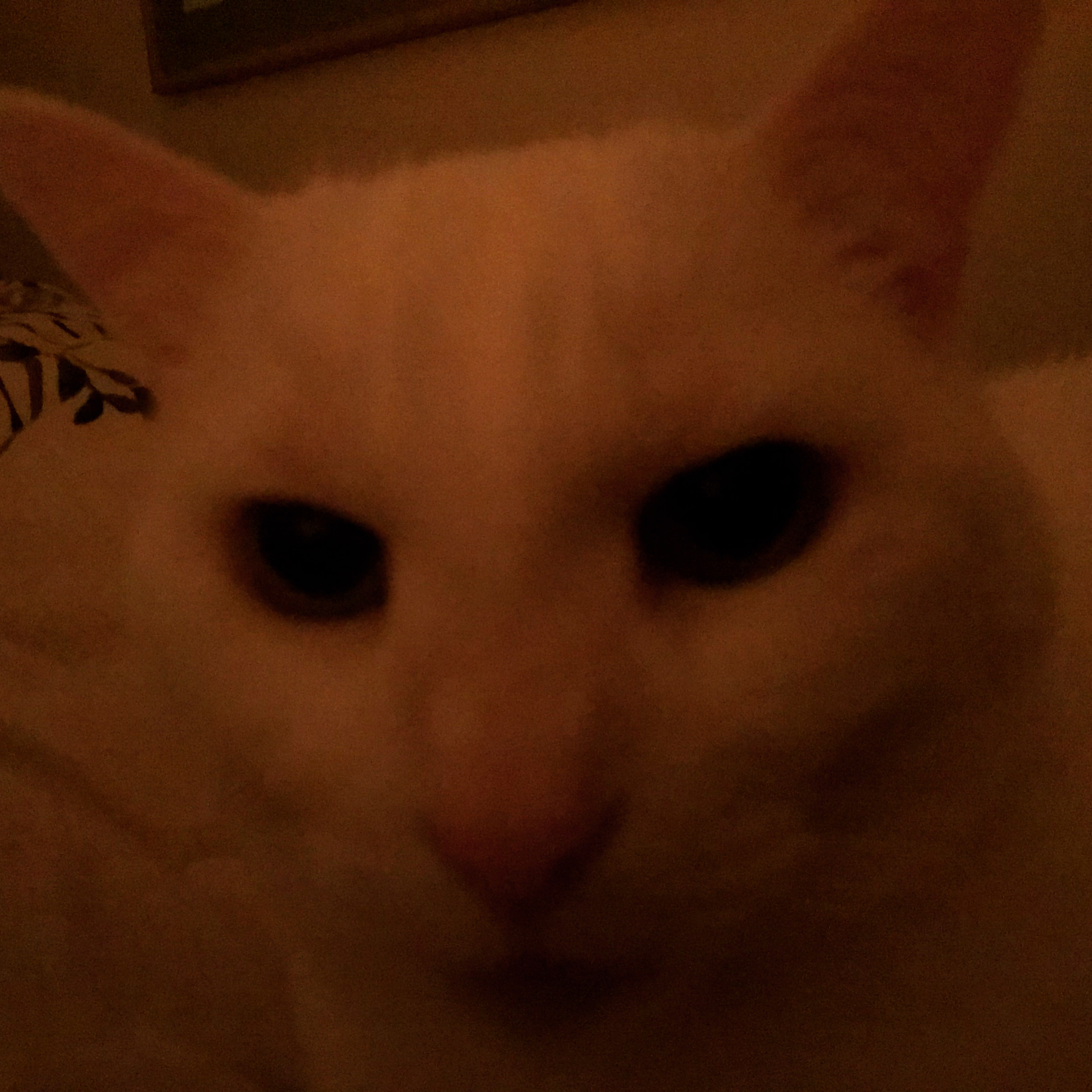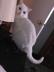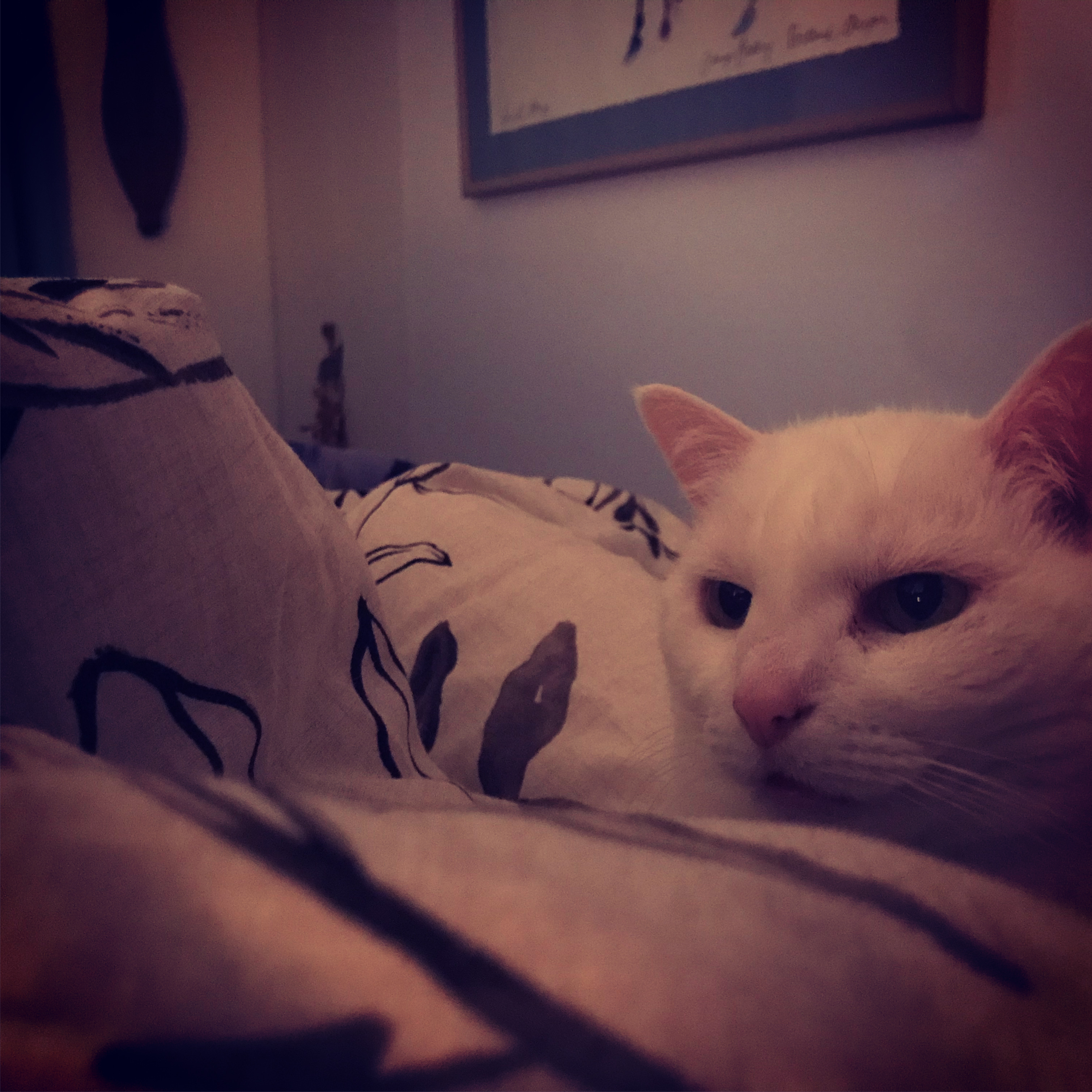 Noel stalks me in bed at night. She is really starting to freak me out. There is nowhere to hide from her. I wake up and she is right up in my face or on the nightstand staring at me. If I pet her, she bites me. I am starting to get nervous.