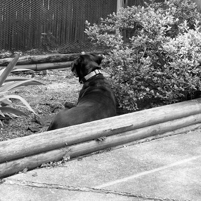 Why black dogs lie in the hot sun, I will never understand. But at least Louise found some nice cool dirt.