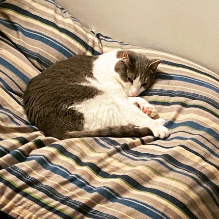 Nine has decided that the big dog bed is his this week. Funny how they move around.