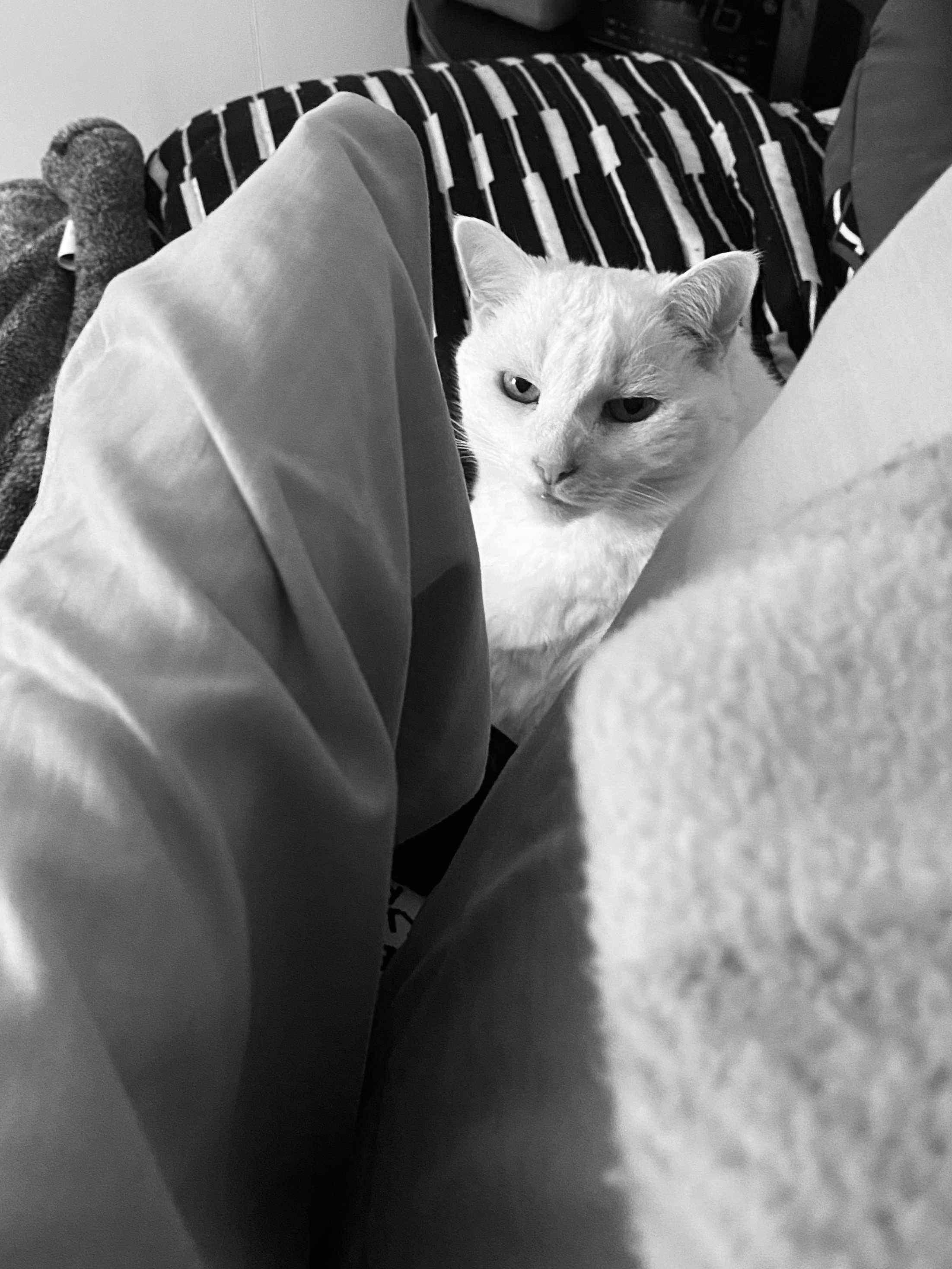 Someone, named Noel the Christmas cat, has decided, this week, that my bed is the place she wants to be, and has banned me from trying to make it. And, of course, she wins. Just look at that face! Would you cross her?