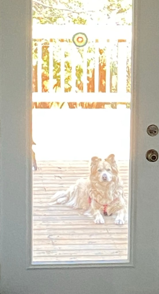 I know that she is out of pain now and not scared of anything. That is what I wanted for her. I hope she is chasing sheep in the meadow beyond the rainbow bridge waiting for me along the road with Nine and all the others. The back door picture above was taken on the day she left us. It looks to me like she was prepared to be out of pain and to be in a better place. The sun shine was perfect to show the warmth inside her when she could quiet for a moment or two.