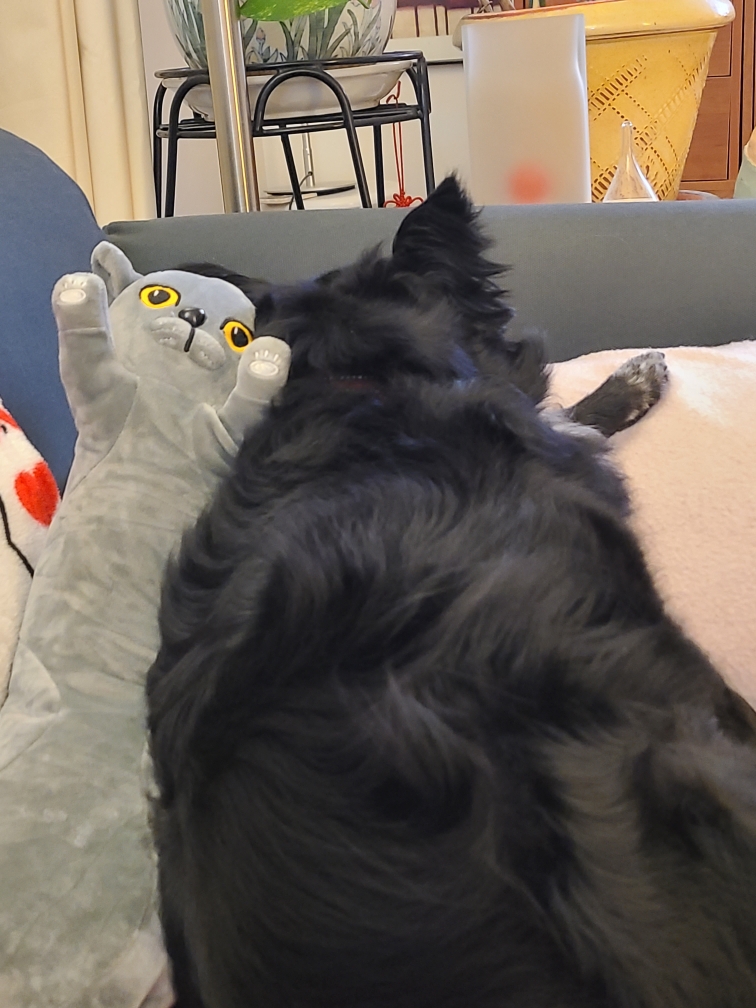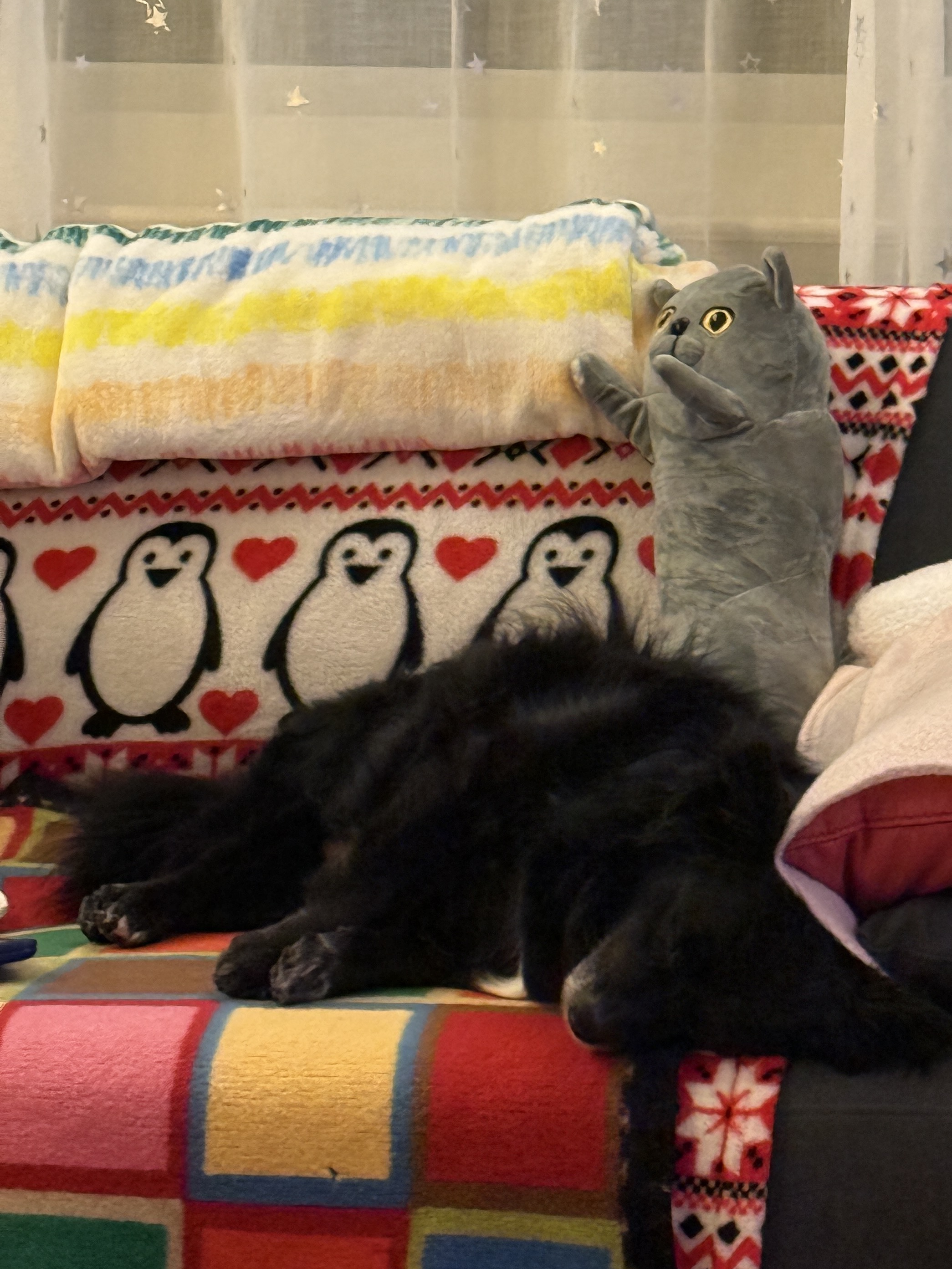 Despite Jolie’s best efforts, he remains devoted to PoleCat #2. He sleeps with her and generally behaves like he has found his soulmate in stuffed form. It’s a love story for the ages. Or at least for the living room.