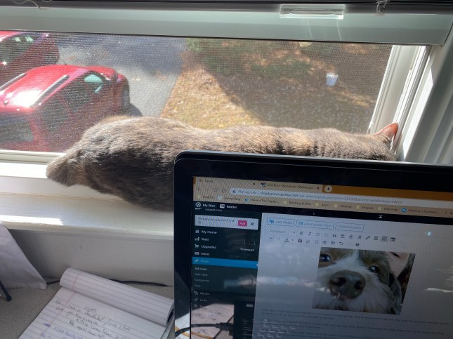 Me, on the other hand, I like a lap. I like to be in the center of everything even if Mom is working. I am sure the people on the other end of her camera calls like to see me much more than they want to see Mini Cooper, who is always on the desk or in the window. I am the #1 lap dog in this zoo.