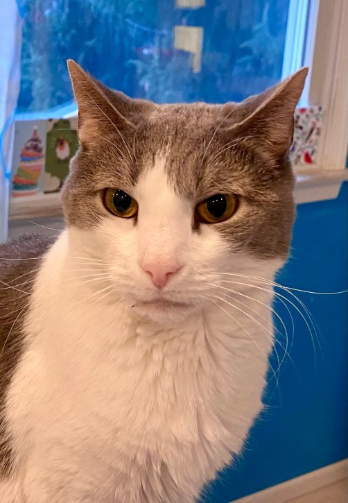 Miss Noel, the Christmas Cat, Queen of the Zoo, turns 15 on March 17. She is spry and happy and that is what we live for. Oh, and she is very demanding as you can see. Though she gets quiet when the camera is on.