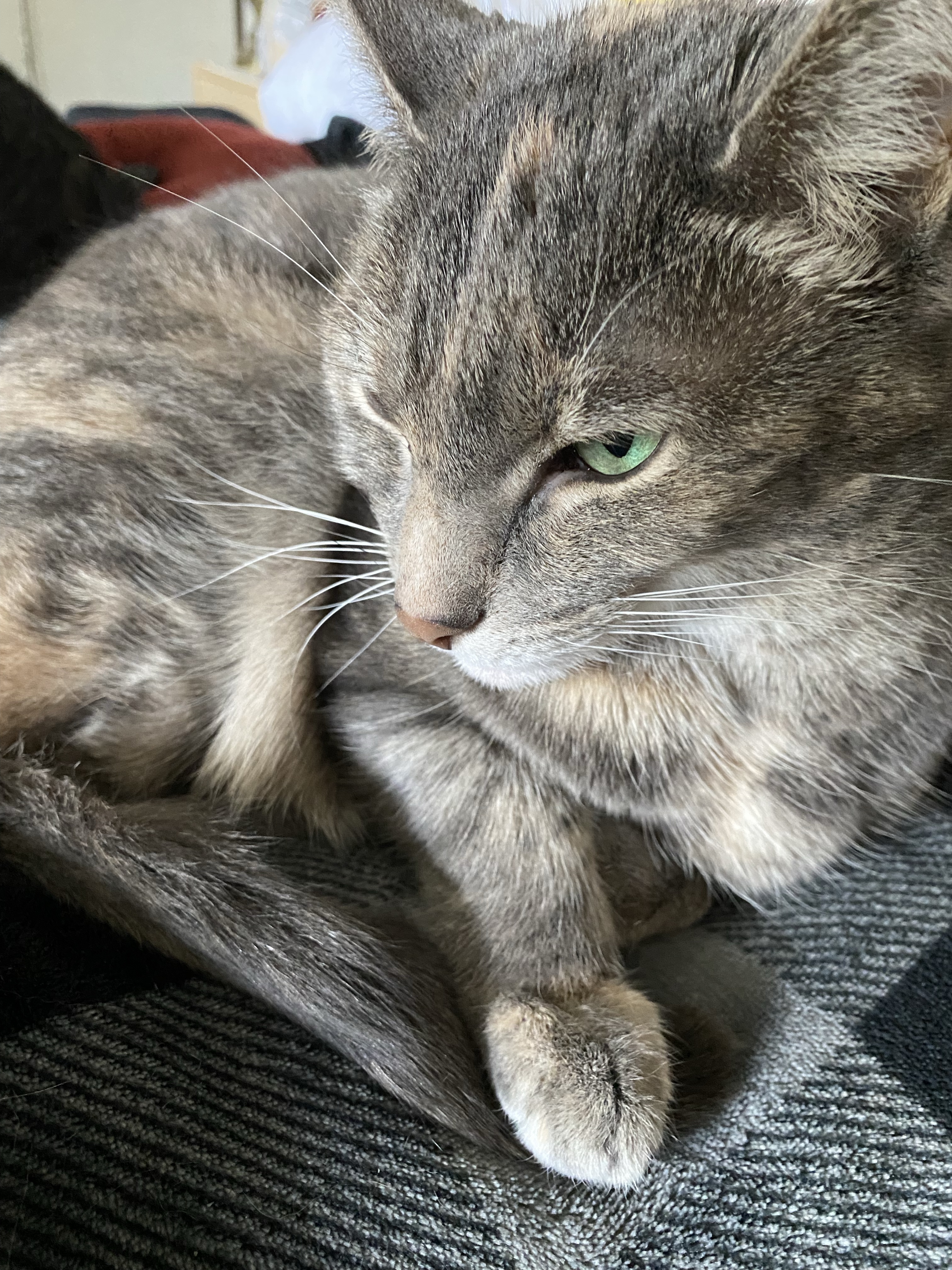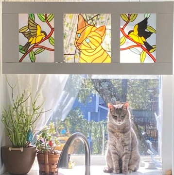 Now that Noel can no longer get on the counter unless Mommy picks her up (which means that she can’t get into the herb window above the sink without assistance), Mini is deciding whether sunning in the herb window is her thing. I think the court is still out on that decision.