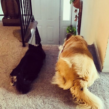 This is a picture of Louise and Sofie almost immediately after eating breakfast. You would think they didn’t just have full bowls of the most nutritious high-quality dog food.