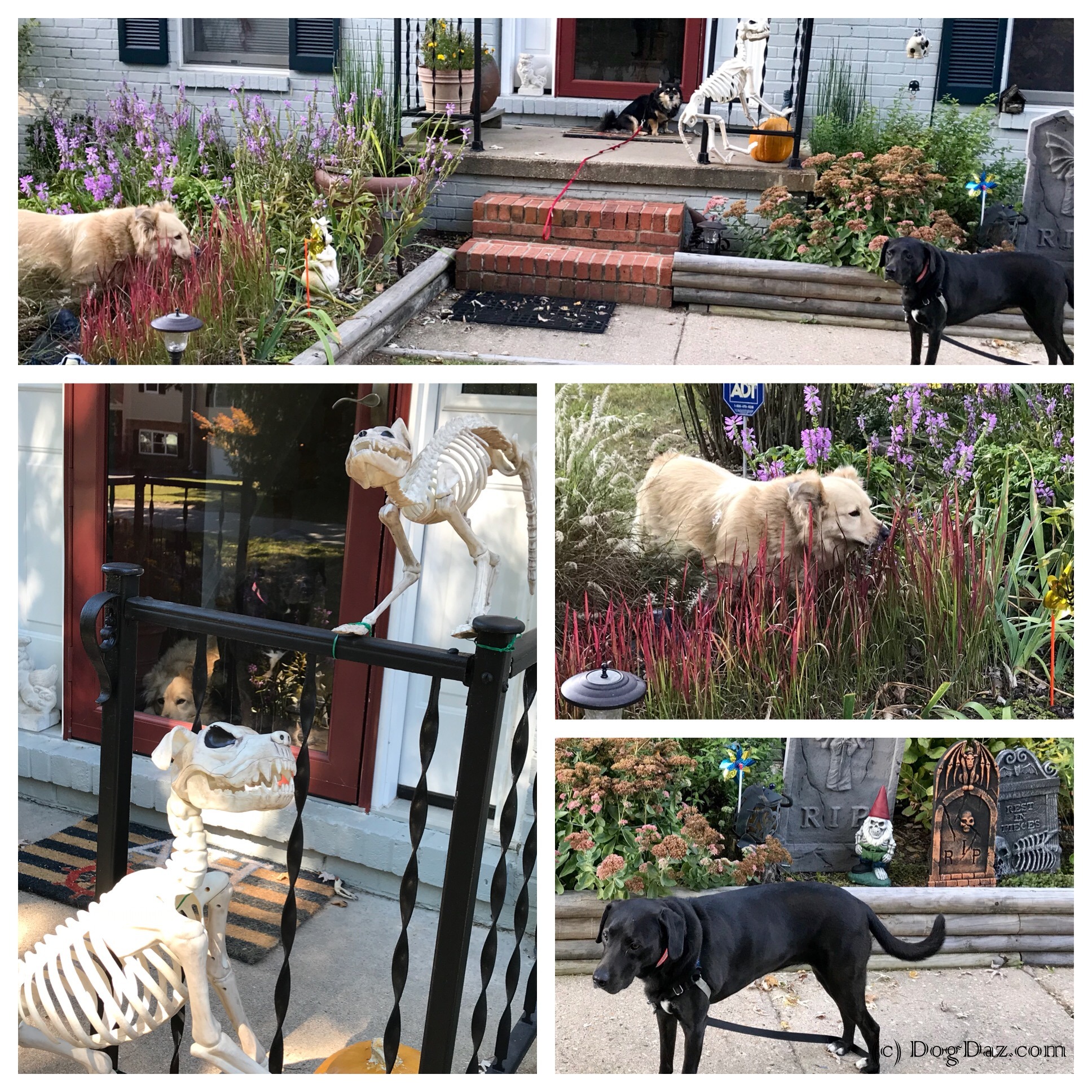 Mom has started her Halloween decorating. She is debating whether she needs to buy more skeleton dogs because there are 3 of us. What do you think?