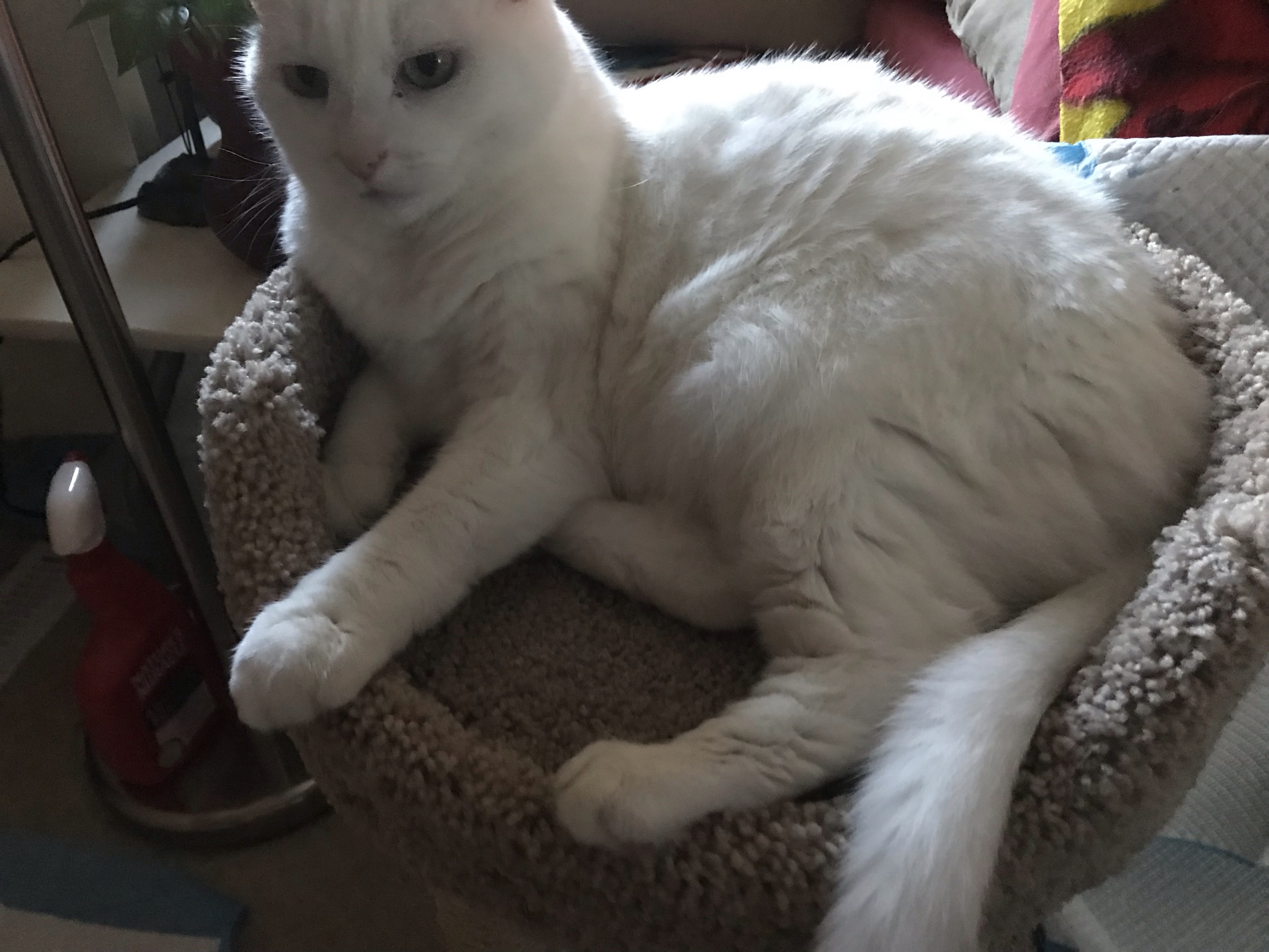 There has been a lot of fighting and fussing over the new cat post that our nice neighbor dropped off because their cat was not interested in it. Well, the zoo cats sure are. Everyone wants to take possession, but it seems like Noel, the Christmas cat, has mostly made it hers. That deep scratch on her nose might mean that someone else wanted to be king or queen of the mountain, but clearly, this throne is hers.
