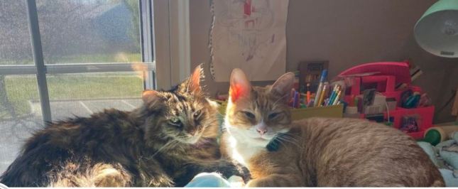 Then, Peanut and AA added a 2 lb bundle of mischief, named Lavender. She is of course pushing her two big brothers around. What a trio these three grand cats make. I can’t wait to see their future adventures. Eevee was giving Lavender a bath and then fell asleep on her. Too funny.