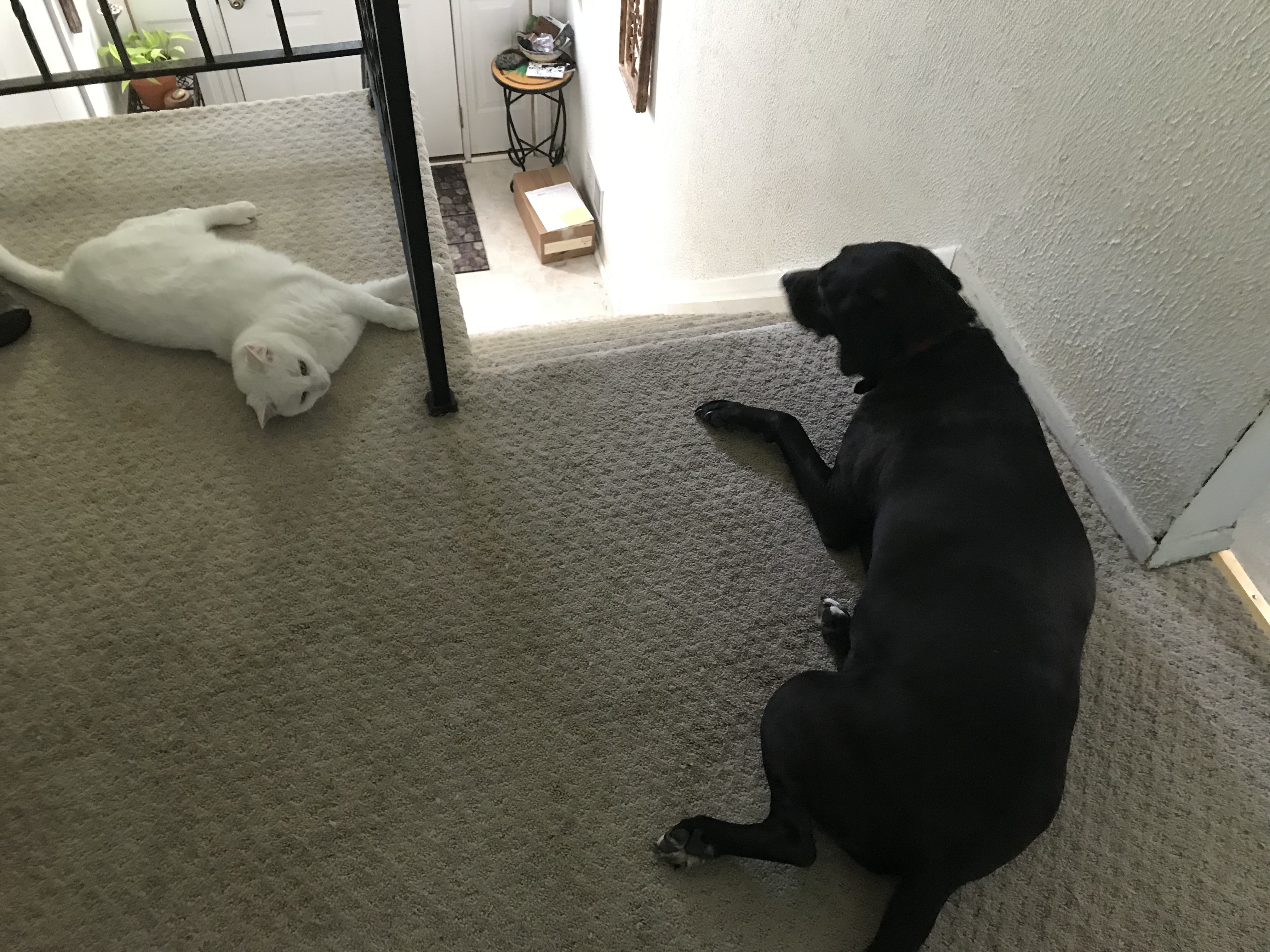 Humans just don’t understand us felines very well, do they? In the human world, I guess they don’t care if a stranger comes into their house and takes all their food out of the cabinet and eats it and then sleeps in their nice cozy bed. I wish there was a way you could explain to them that cats are very territorial and suspicious creatures. We need our own spaces. Do you have shelves that you can climb up on, a cat tree, or at least a window perch to get away from the pesty newbie? I know that in my house, we have a community of cats, of which I am the Queen, and sometimes we all like to be together, and many times, we all want to be alone. That is why our humans have catified our house with trees and window seats and gates to keep the dogs away from our play areas.