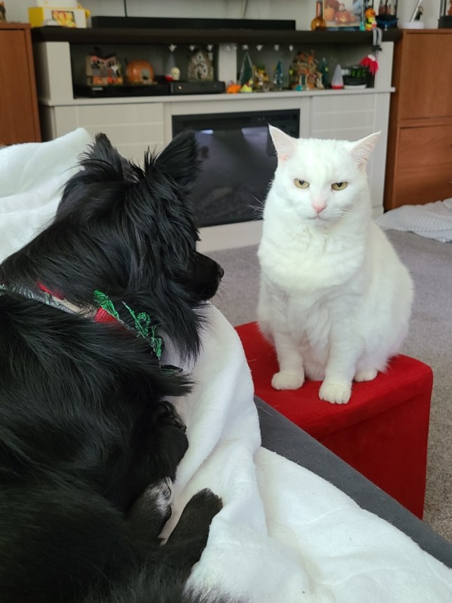 Dementia does interesting things to animals. It appears that Noel at almost 17, has decided that she is a dog. Don’t get me wrong, she screams like a cat, constantly and continually, but she is behaving more and more like a dog.