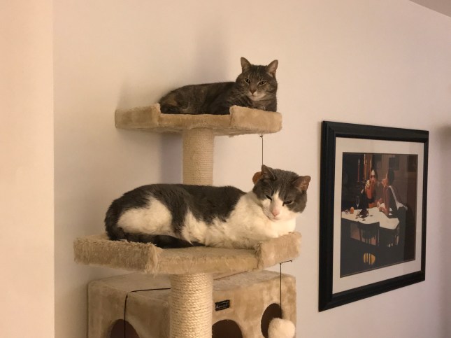 Mini Cooper and Nine caught a moment of quiet by the front door while the dogs were busy upstairs.