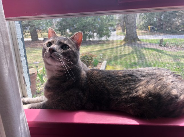 Sofie gets food aggressive, so I have a gate up at both kitchen entrances and I put Charles in his kennel in the living room (he is also food aggressive) and I make all the cats take the long route through the dining room passthrough window, over the kitchen table, along the window sill, onto the kitchen island, and around to the herb window, unless I feel like picking someone up and carrying them over their during the mayhem.