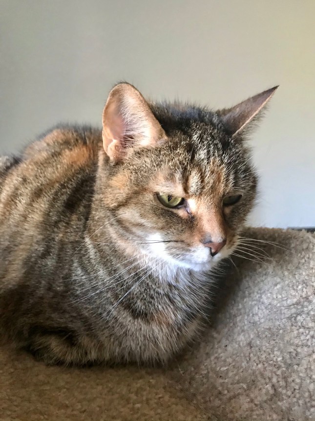 Sofie and I were in visiting Stella and I was able to catch a few shots. Usually, she is moving around and really hard to photograph. Such a pretty baby, my Cali-torte. It amazes me how happy she is with her solitary life. She does like the occasional visit from Sofie or Louise. She doesn’t like Charles at all, and of course, hates all the other cats. She also is not a cat you see smile much but she does purr. I love you, Stella the Serious.