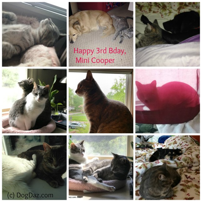 Mini Cooper behaves more like a dog than a cat. She is extremely social and more forward than any cat that has every been at the zoo. She greets everyone at the door, tries to go for walks with the dogs, and is ever present, just like a dog. She wants to be on your lap whenever possible and loves to watch the fish in her fish tanks. She is a great little girl. Happy 3rd birthday, Mini Cooper, you bring us great joy!