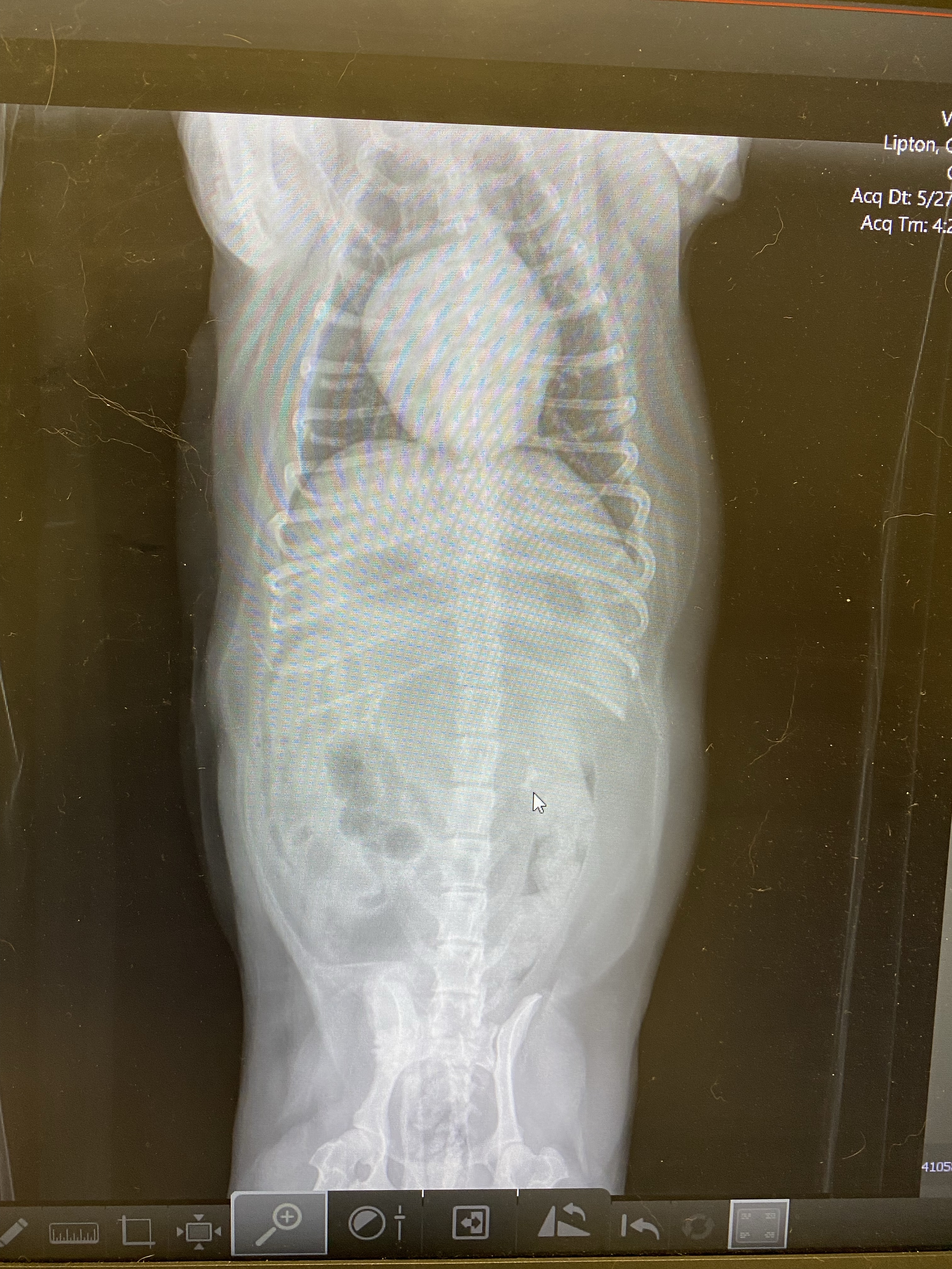 Because Charles has a known heart murmur, she wanted to do an x-ray to see how his heart was doing. Well, we were surprised at what the x-ray told us.