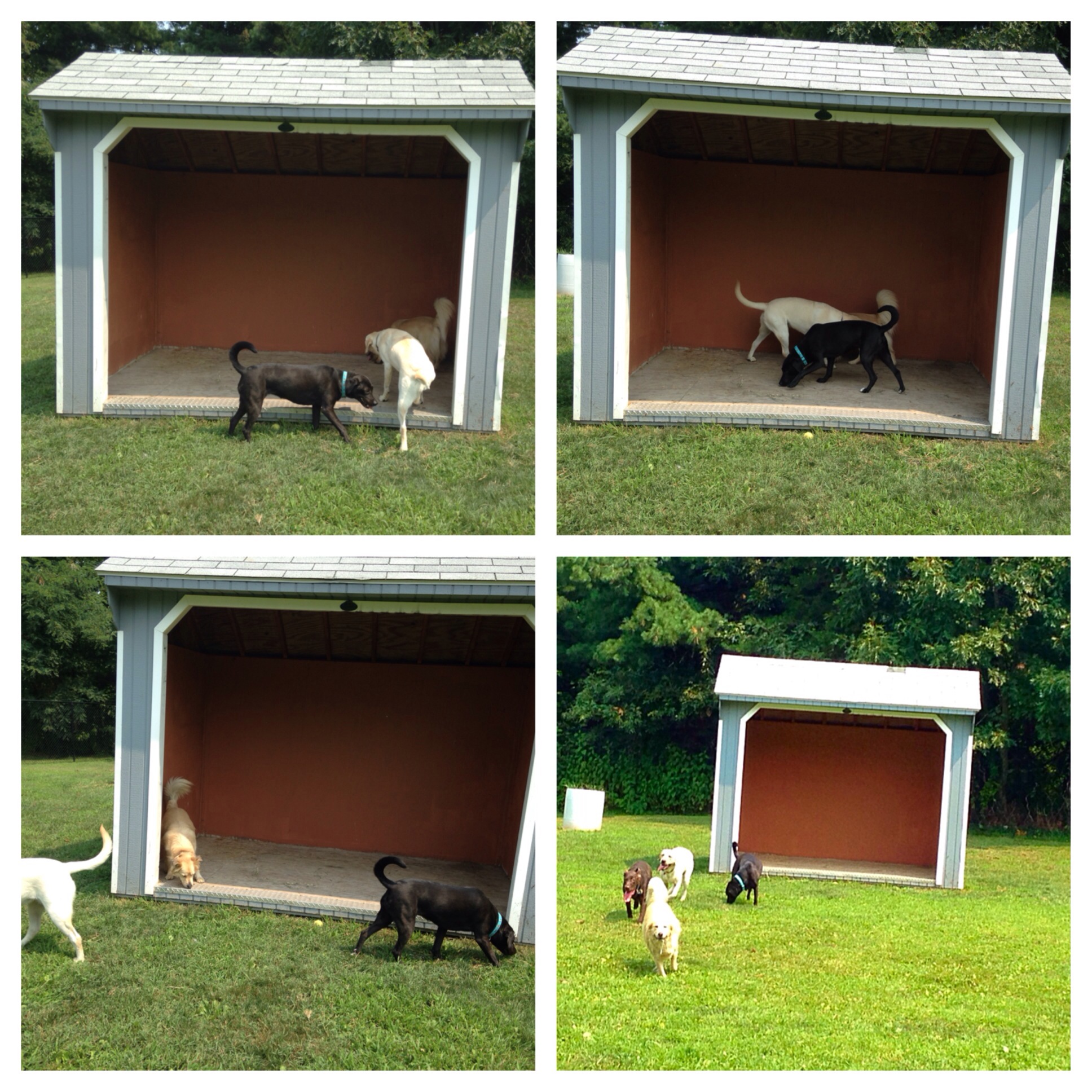 When we got to the dog park there was this weird building in the yard. We don’t know where it came from or who brought it. Louise and some of my pals went to sniff it out. Mommy says it is a quick place for us to go if it starts raining or worse, thundering. It smells OK, so we may need to mark it with our scent a few times to tell others we have been here and checked it out. – Sofie Bear