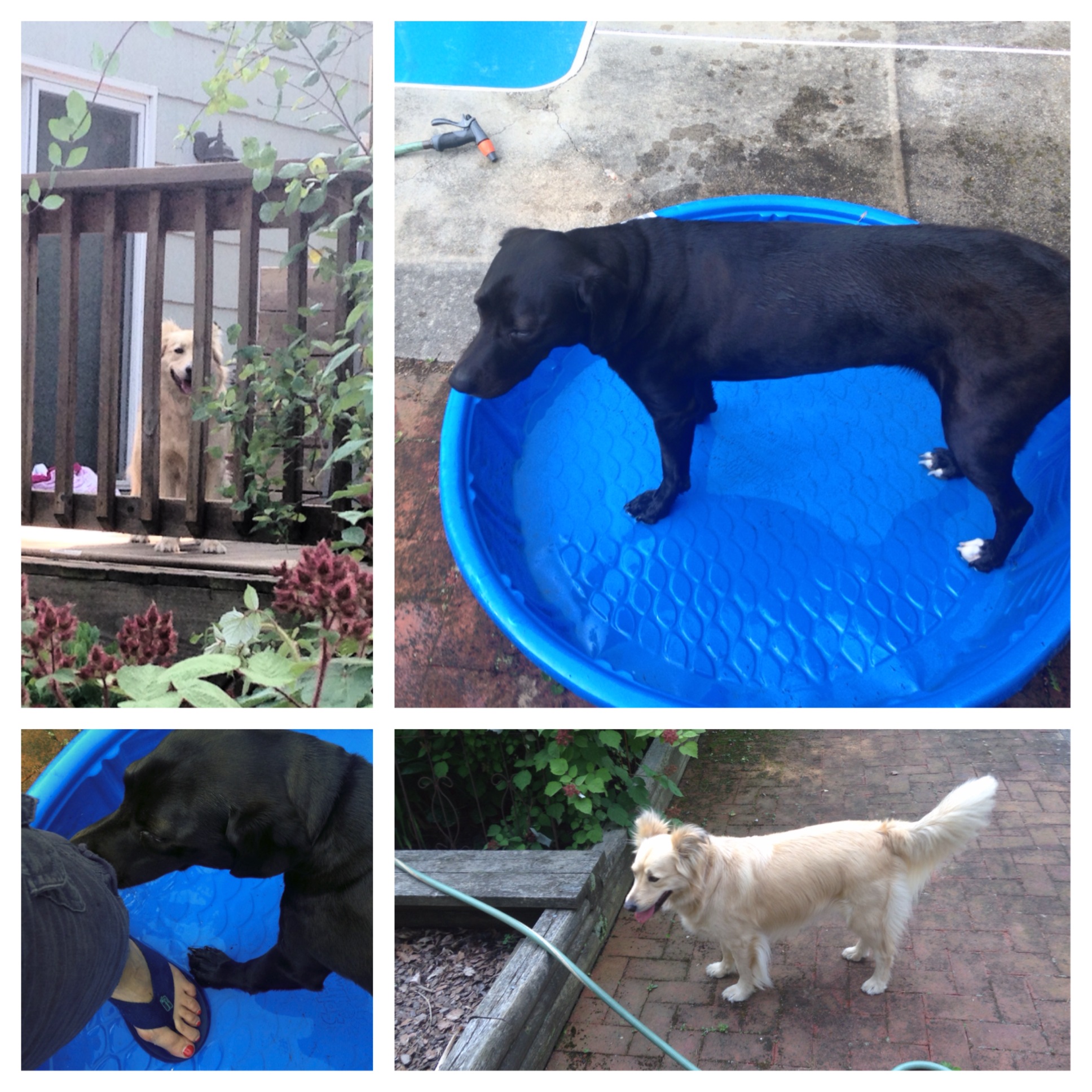 We have so much fun swimming with Mojo and Zelda in their dog pool.
