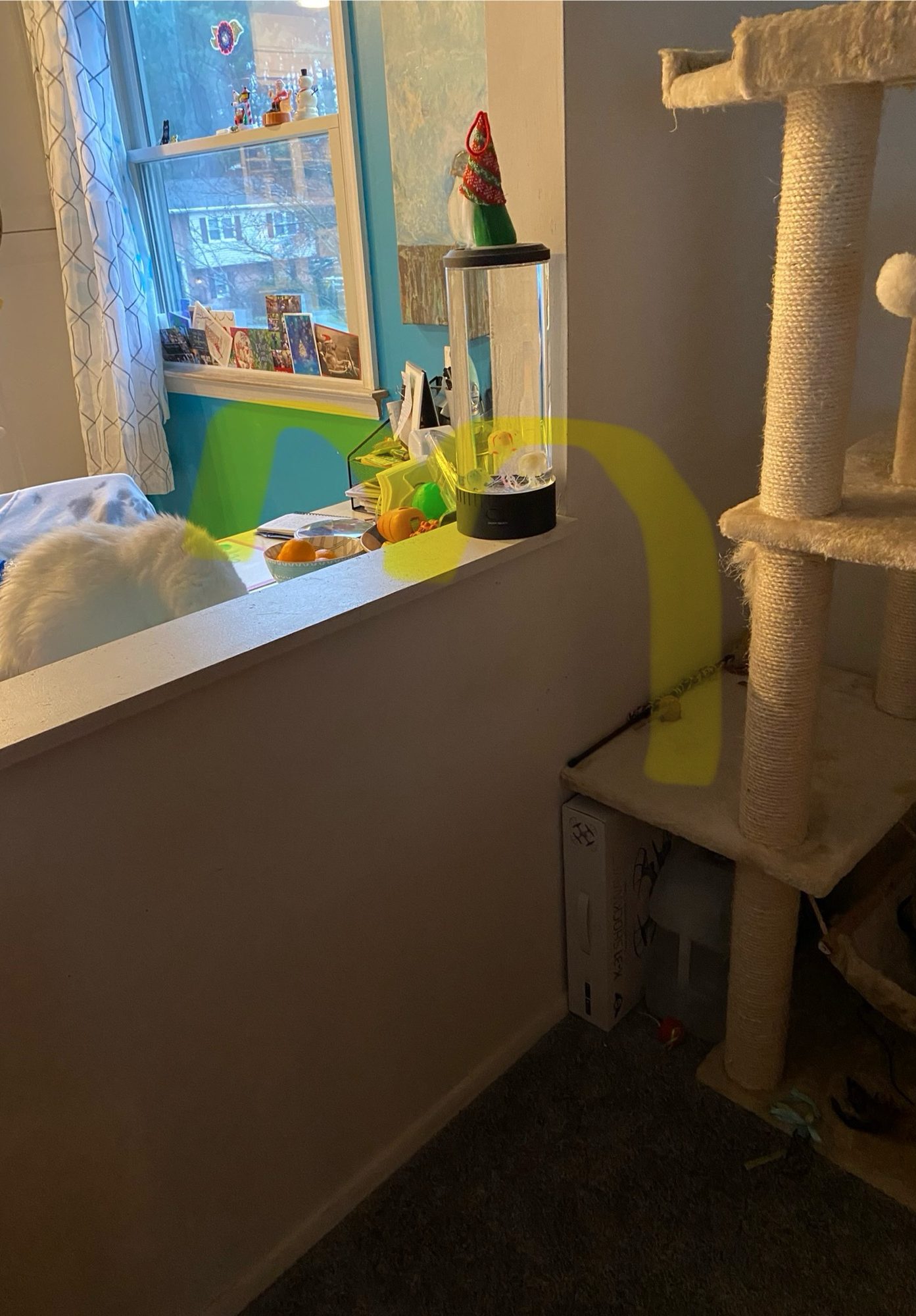 My Mom really doesn’t understand that I have the most incredible nose and can jump like a cat and get everywhere, especially when it comes to food. Now she thinks she has removed every way for me to get on the table except the cat tree, which is how Noel is getting up to the kitchen (she path below).