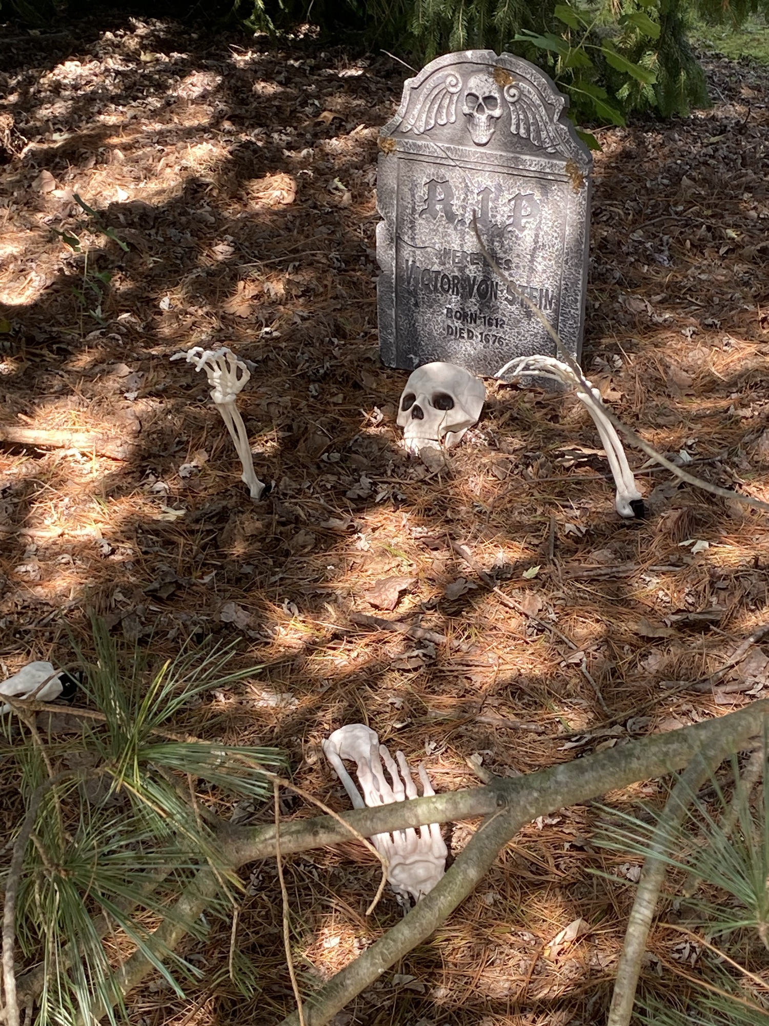 October is our favorite month at the zoo. Not only because the nights are cooler but the colors are all turning. And Mom gets to dress up the yard with spooky things.