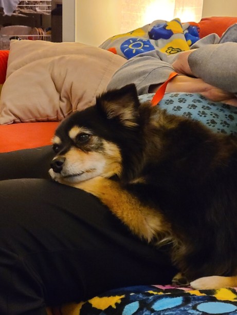 Mini does not like that Jolie has taken over her favorite spot on the couch. I physically have to pick Jojo up and move her away or Mini gets all bent out of shape.