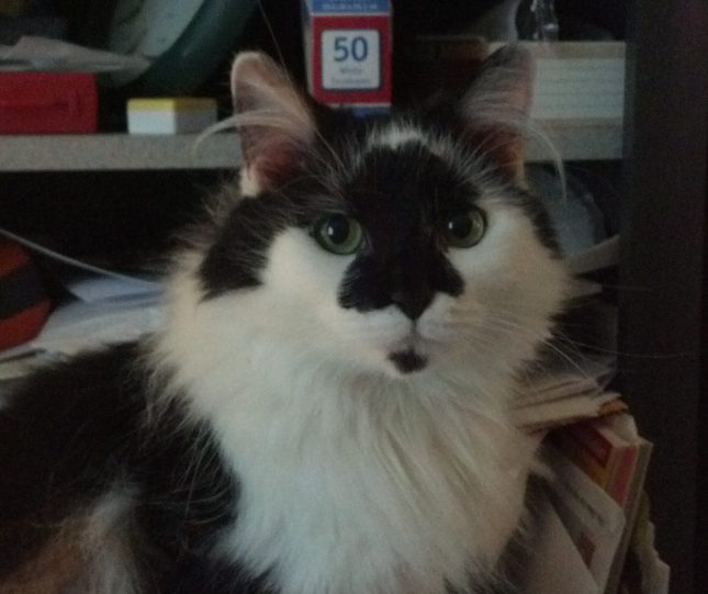 This morning, Jolie and I were having a fine time chasing the sun spots on the steps when Miss Bossy Pants herself—Mini Cooper—sauntered up and started pushing us out of the way. Seriously, who invited these cats anyway?